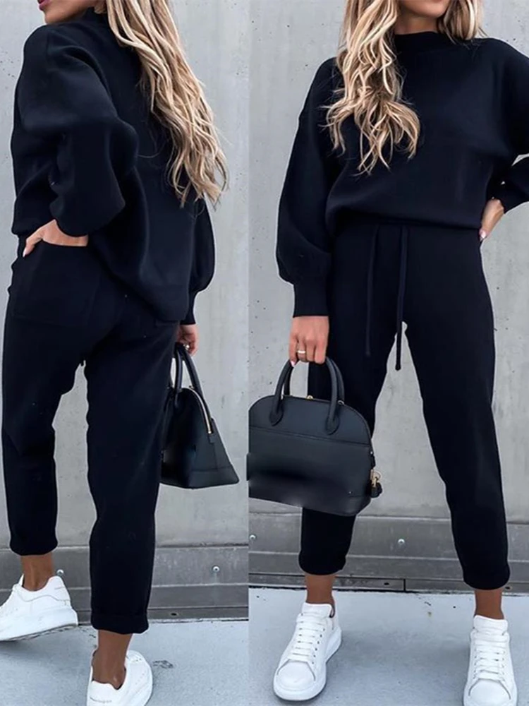 Женский свитер с карманами, повседневный однотонный костюм из двух ...