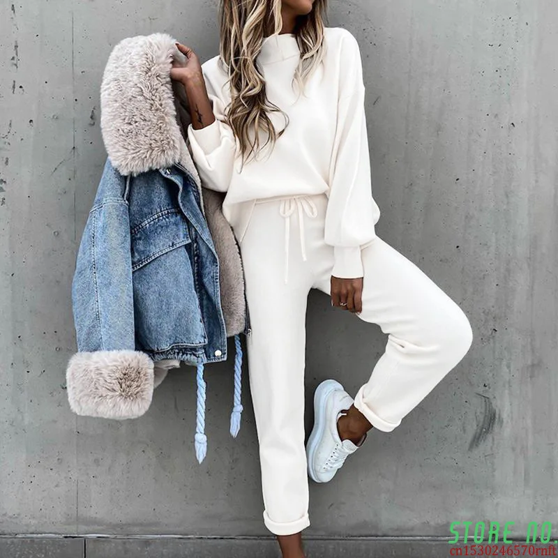 Женская спортивная одежда, Свитшот из 2 предметов, Повседневная бел...