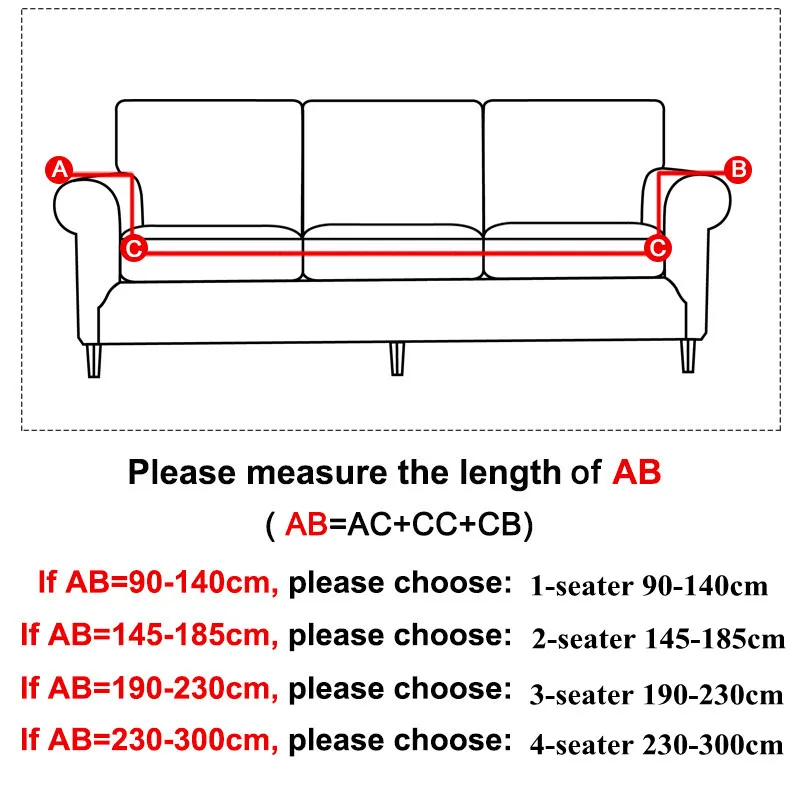 Для L типа или углового или секционного дивана, который в сочетании с 2 или 3 частями отдельно, вам нужно заказать 2 или 3 шт крышка для него. Размер чехла будет зависеть от длины линий AA, BB и CC.