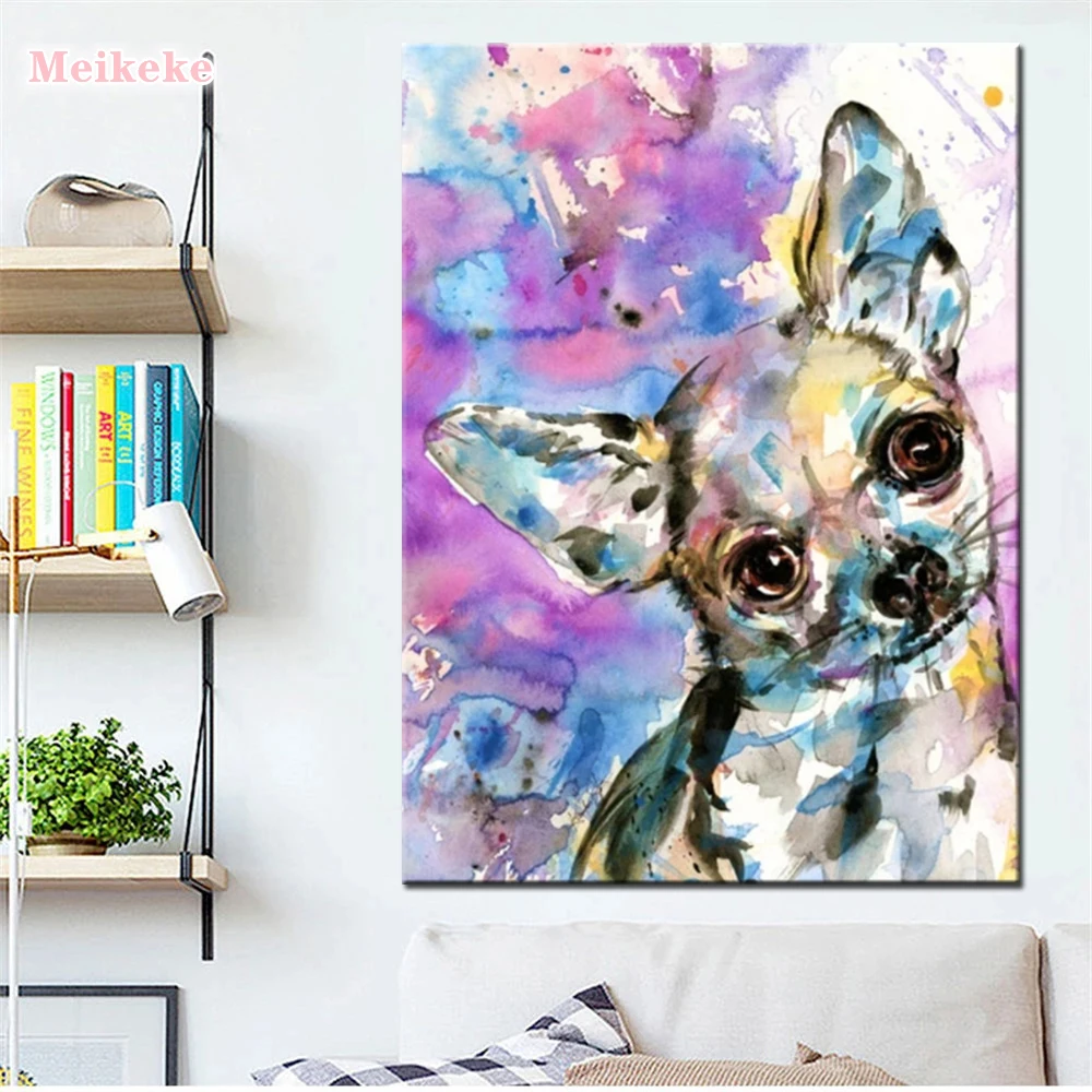 Pintura em diamante colorida chihuahua 3d diy, pintura quadrada completa/redonda com bordado em diamante cachorro animal de estimaçao ponto cruz strass cristal