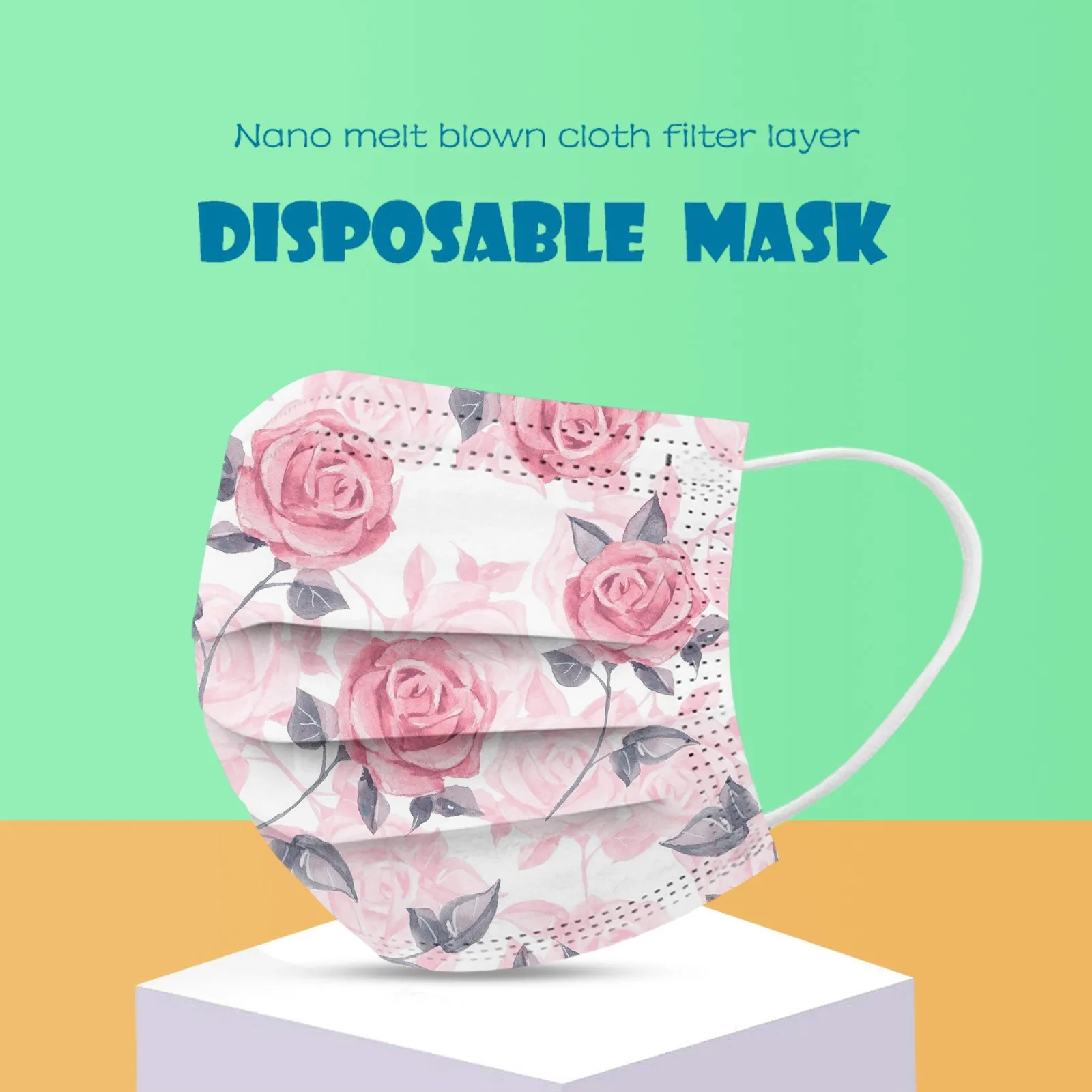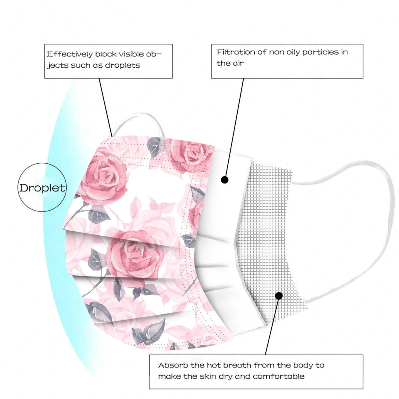 10-50 шт., одноразовая маска для лица с цветным цветочным принтом