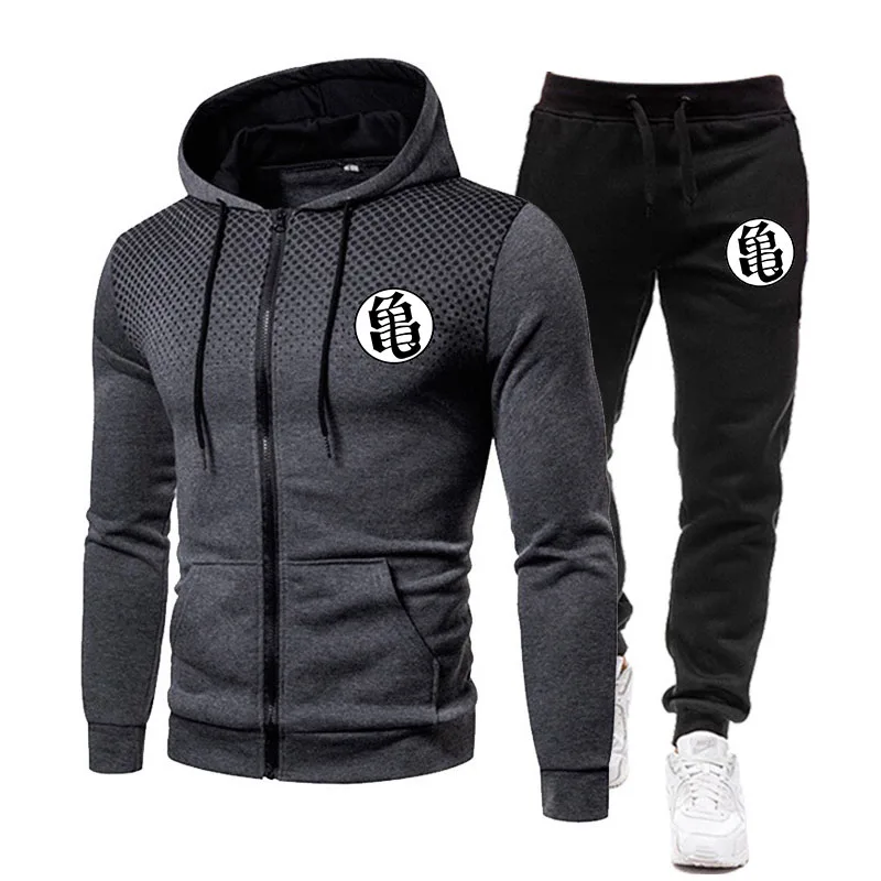 Новый спортивный костюм с надписью японской анимации, мужской костюм на весну и осень, толстовка на молнии и брюки, повседневный костюм из двух предметов
