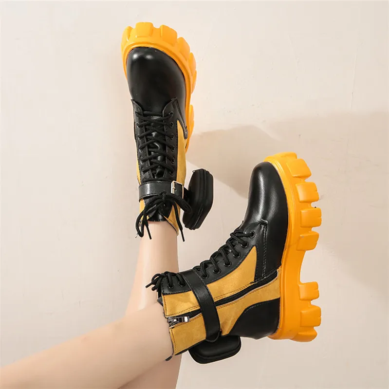 Новинка Осень-зима 2021, модные женские Ботинки Martin большого размера в британском стиле, ботинки на шнуровке с карманами, кожаные ботильоны на платформе