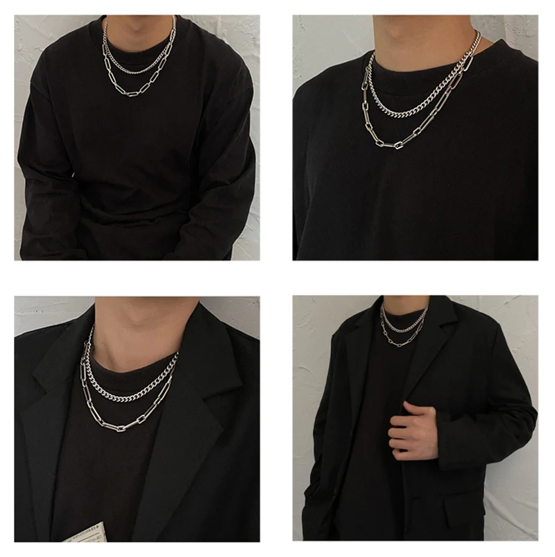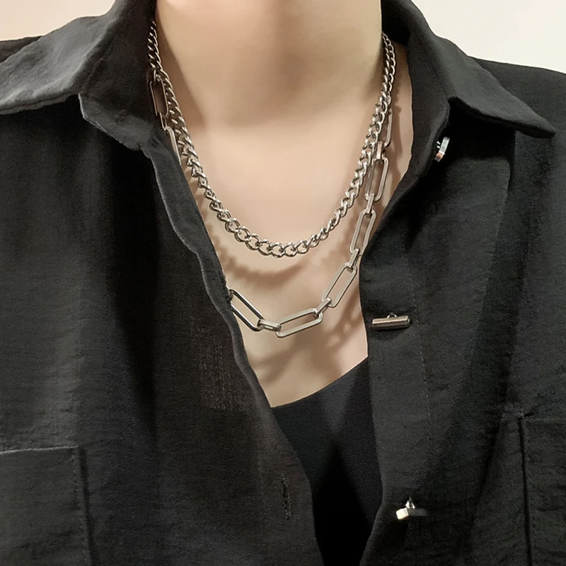 Двухслойное соединение цепи из нержавеющей стали чокер ожерелье хип-хоп уличное ожерелье с выстрелом ожерелья трендовые очаровательные рождественские украшения