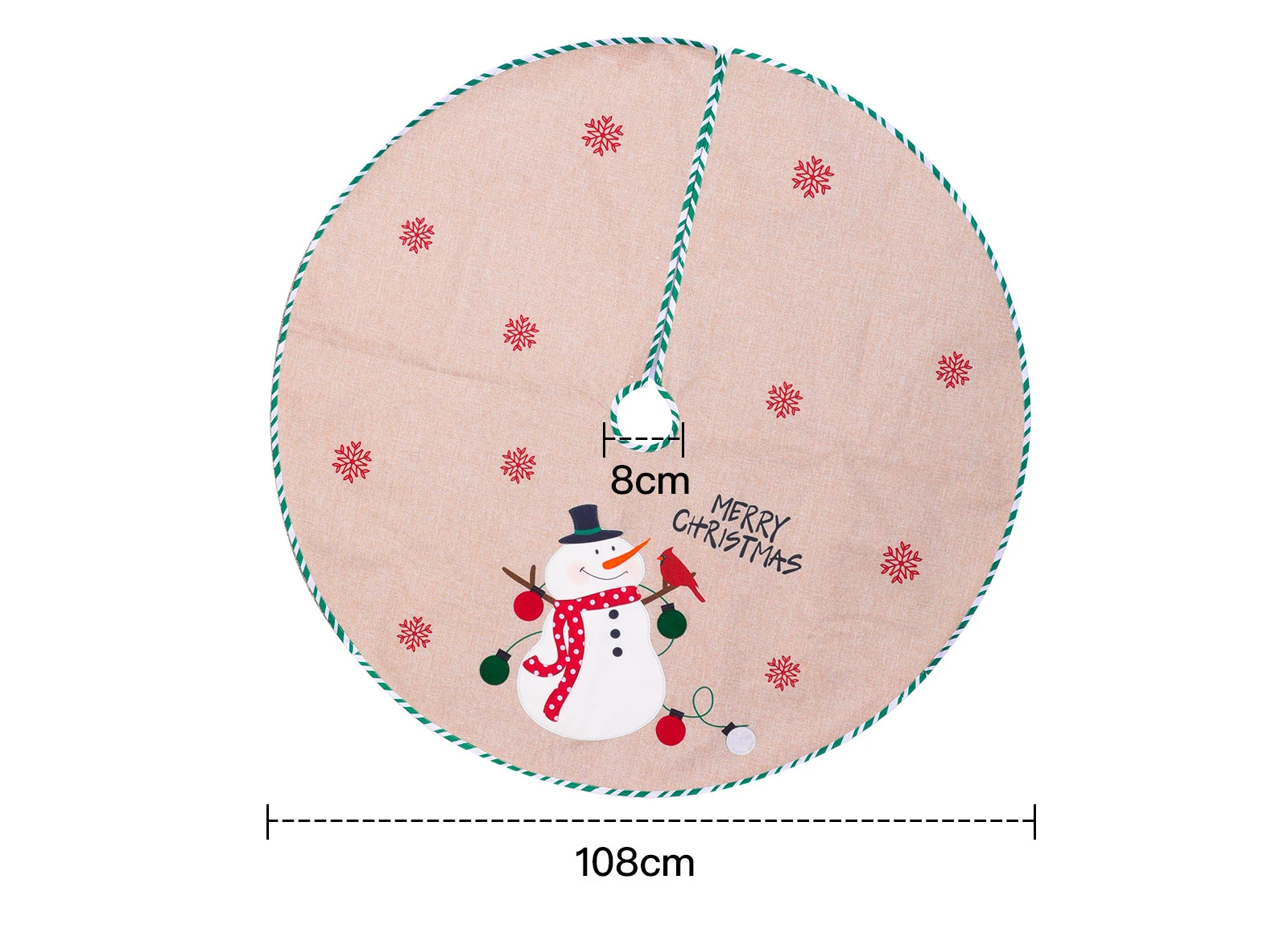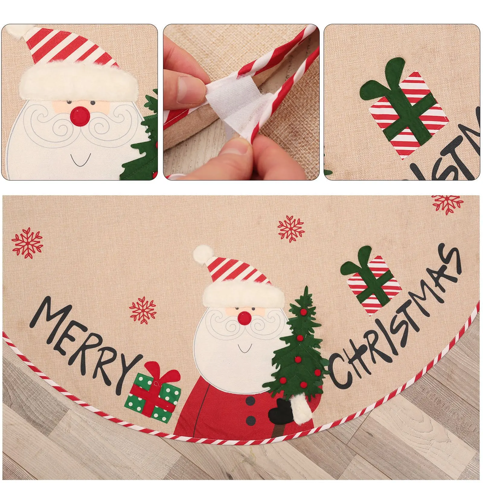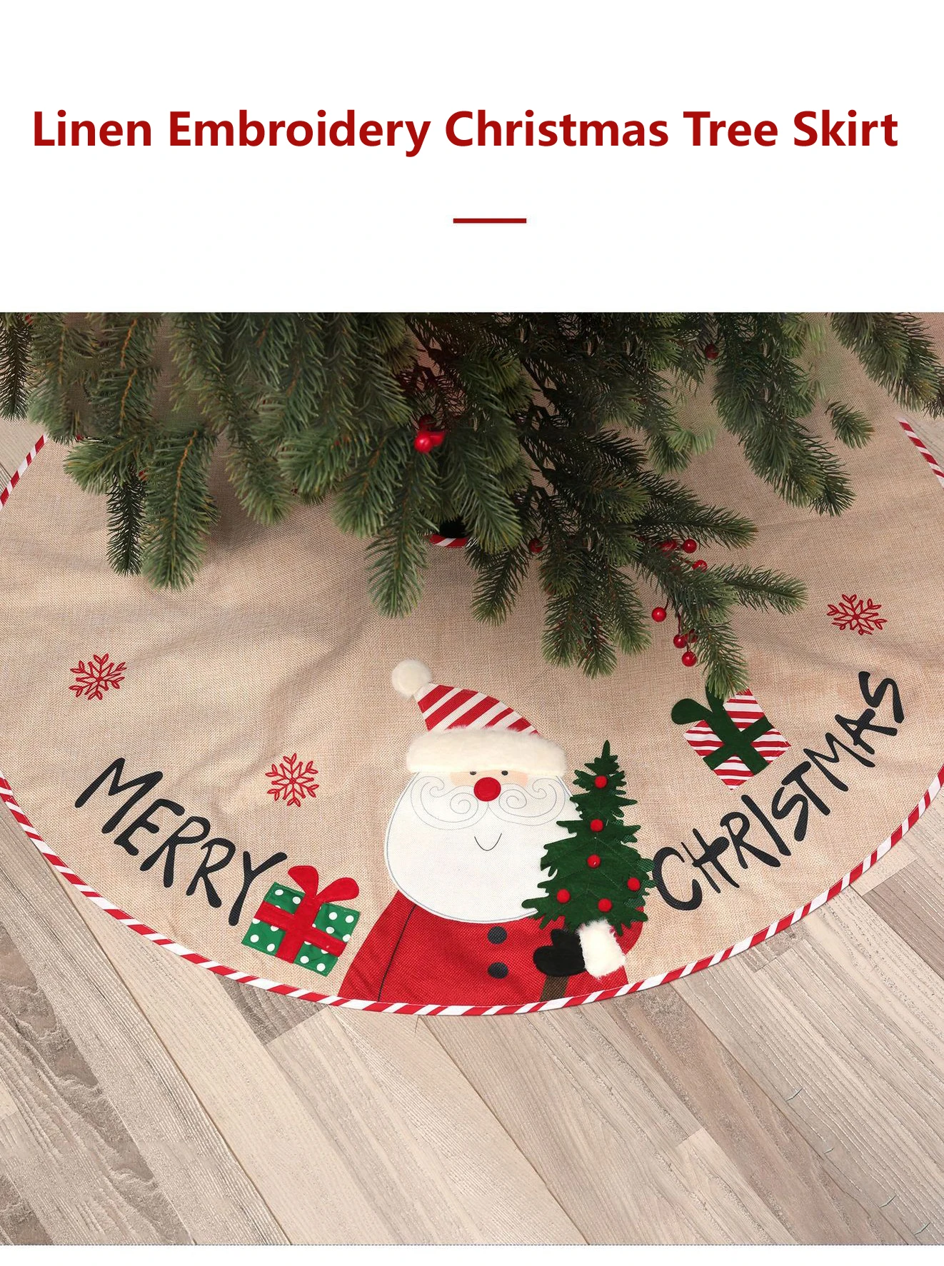 Рождественская юбка с вышивкой Санта-Клауса, снеговика, льняной коврик, украшения для рождественской елки, Новогодний Декор для дома
