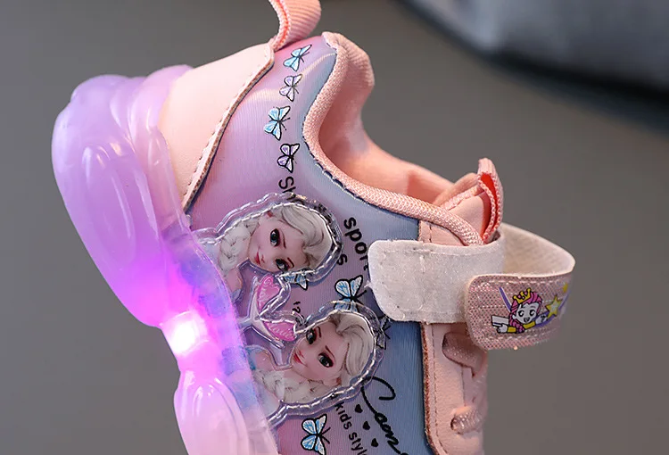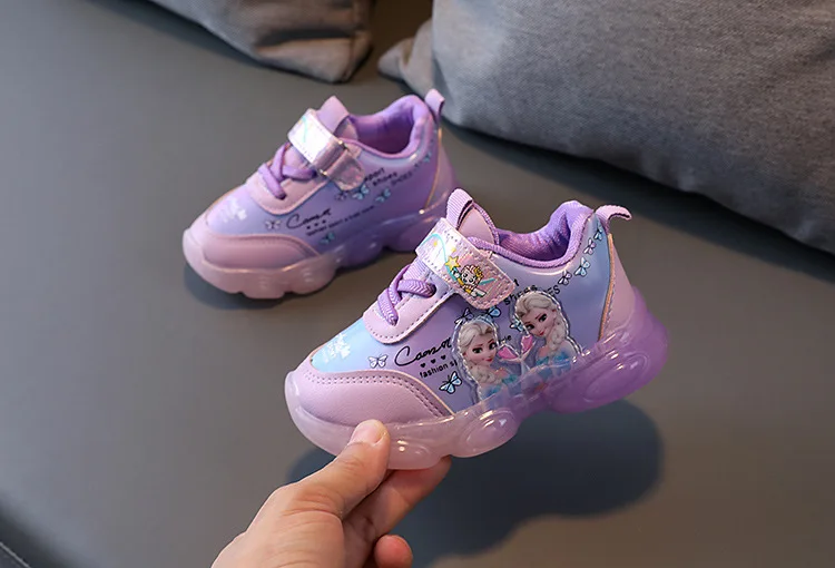 Детские светильник кие кроссовки Disney, осенняя сетчатая обувь со светодиодом, Снежная королева, для девочек и мальчиков
