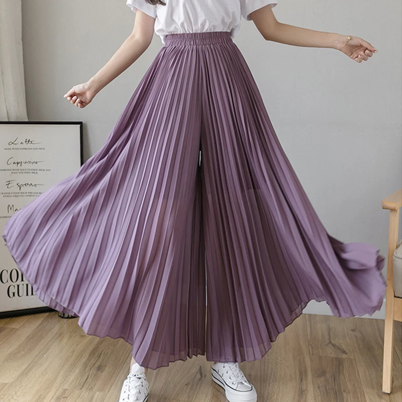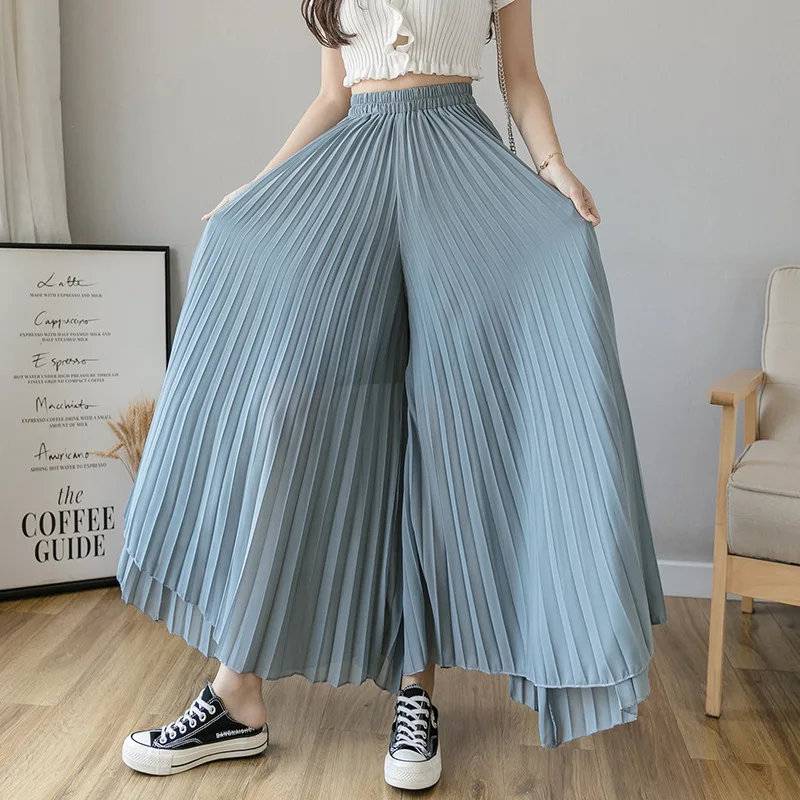 Юбка-капри женская шифоновая плиссированная с широкими штанинами и эластичной резинкой на талии