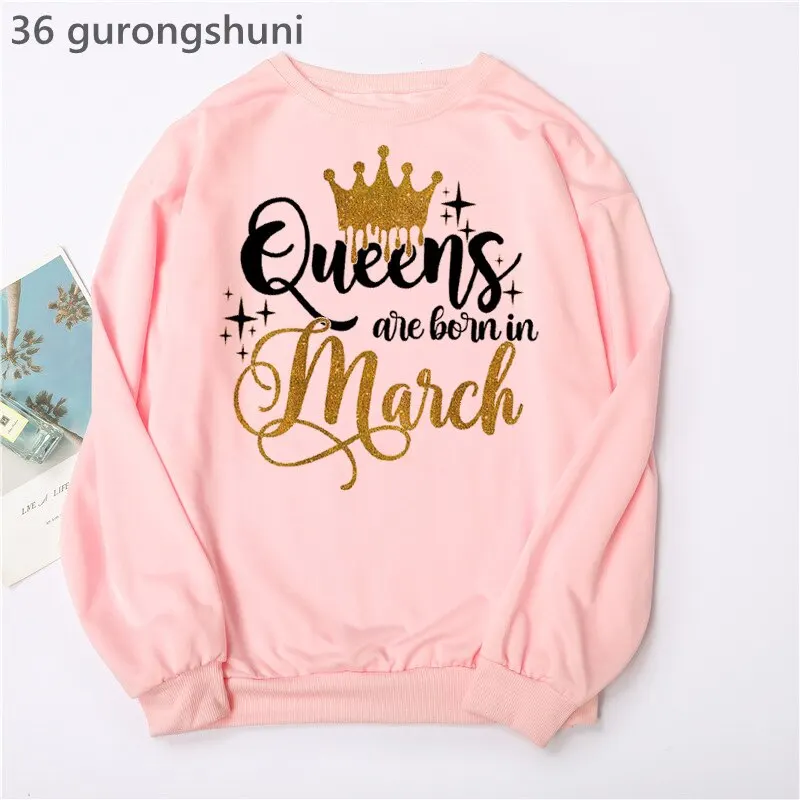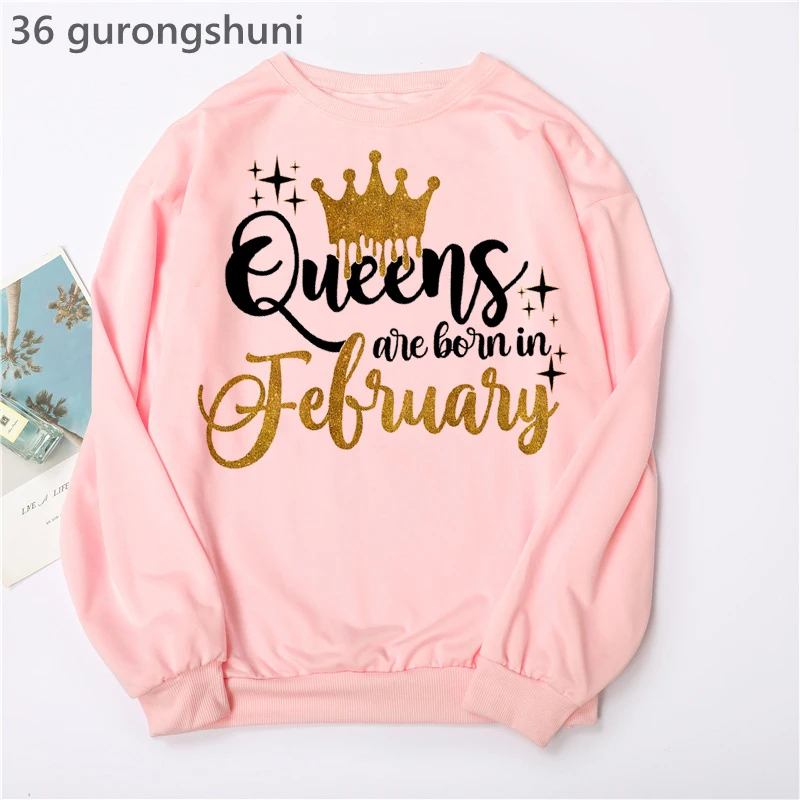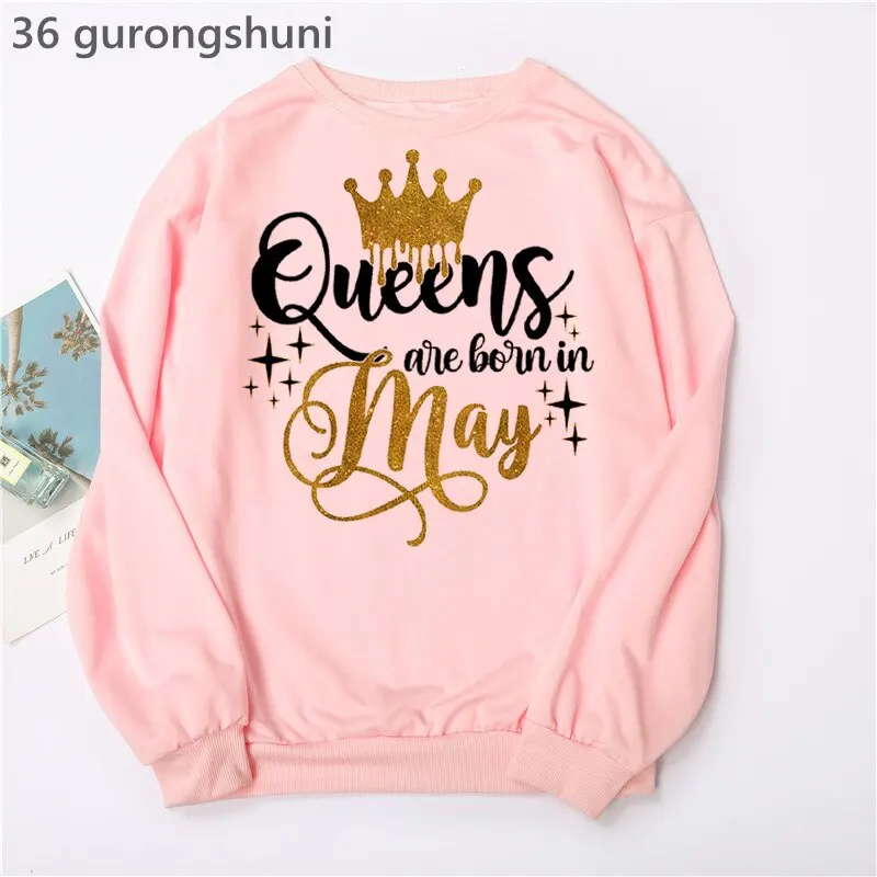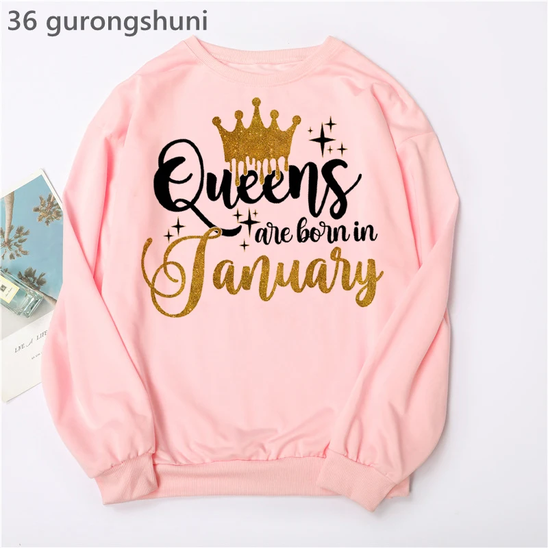 Подарок на день рождения розовые толстовки Женская одежда 2022 Золотая Корона королева рождены с января по декабрь толстовка с графическим принтом женская