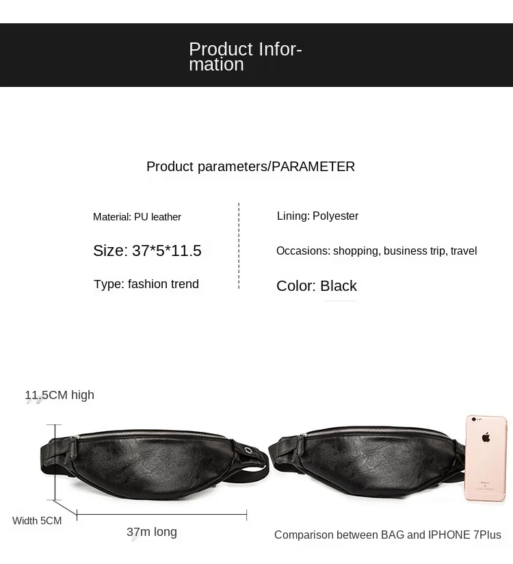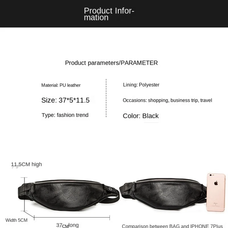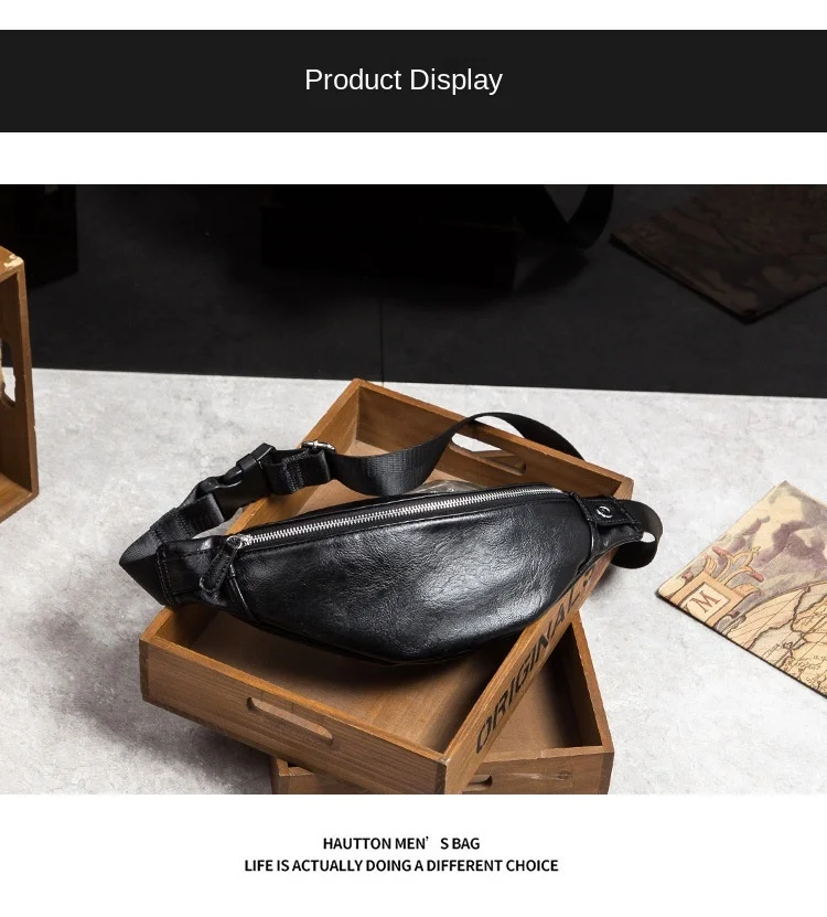 Сумка-банан мужская кожаная, повседневная, большая, для телефона