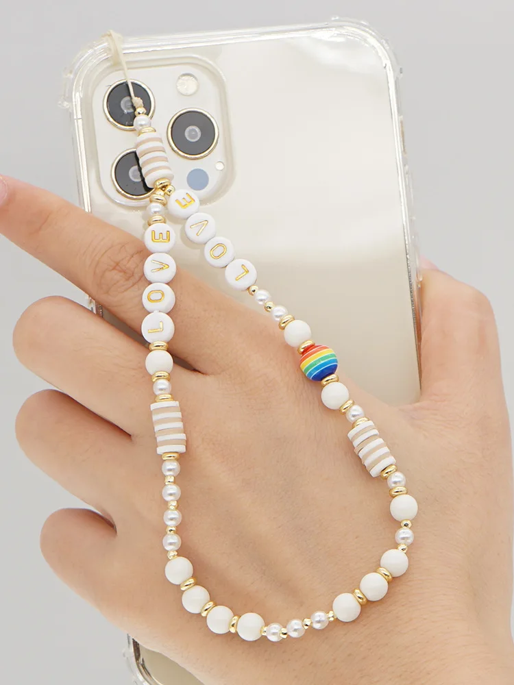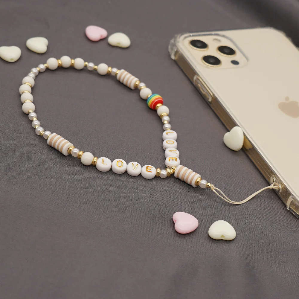 Женский чехол для телефона, с бусинами и жемчужно-розовой цепочкой