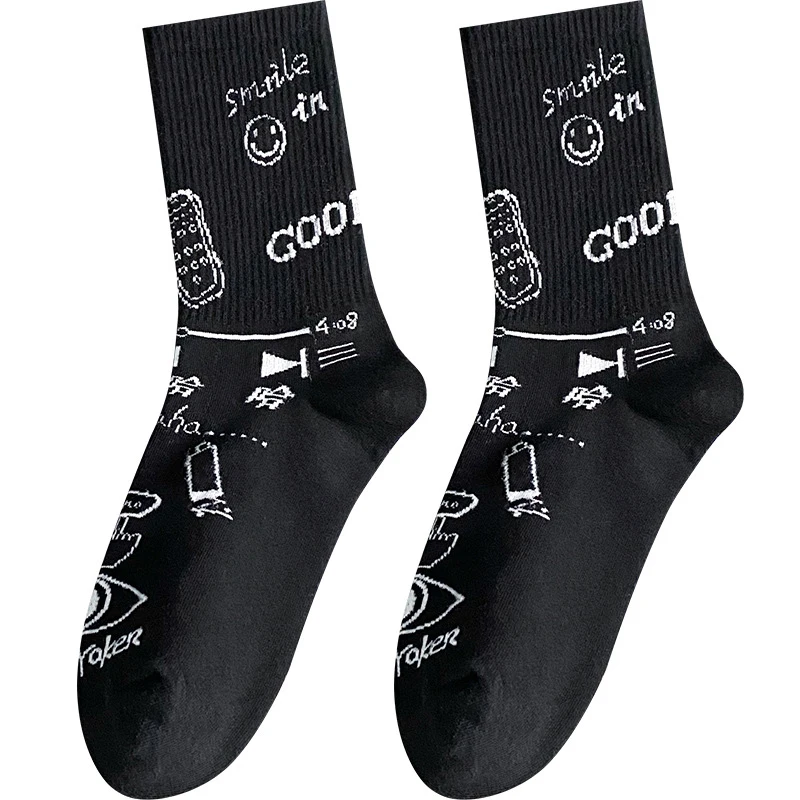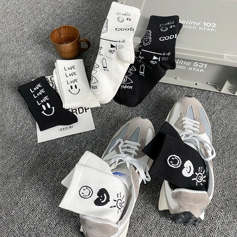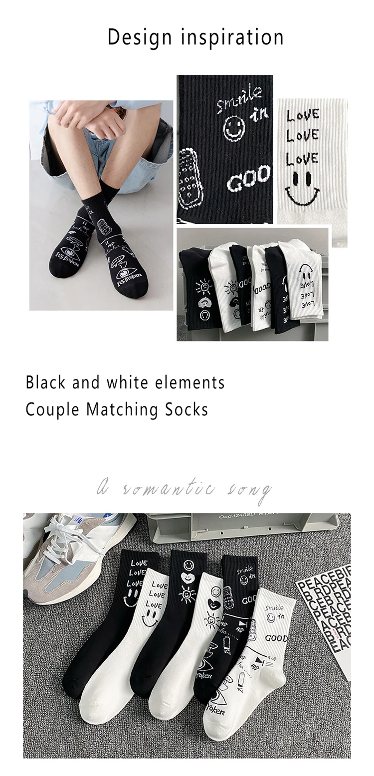 Носки для пар с забавными надписями, классные, белые, черные, милые носки со смайликом, женские хлопковые носки с напуском, носки в уличном стиле
