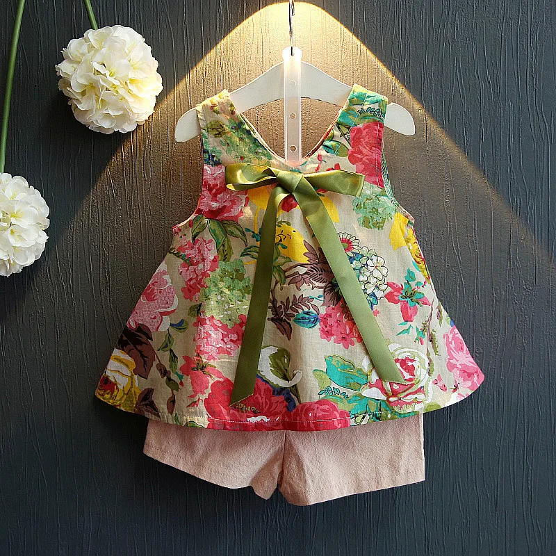 Летние комплекты одежды для маленьких девочек, топ без рукавов с цветами, бандажные шорты и брюки, повседневная одежда, спортивный костюм из 2 предметов, детские костюмы