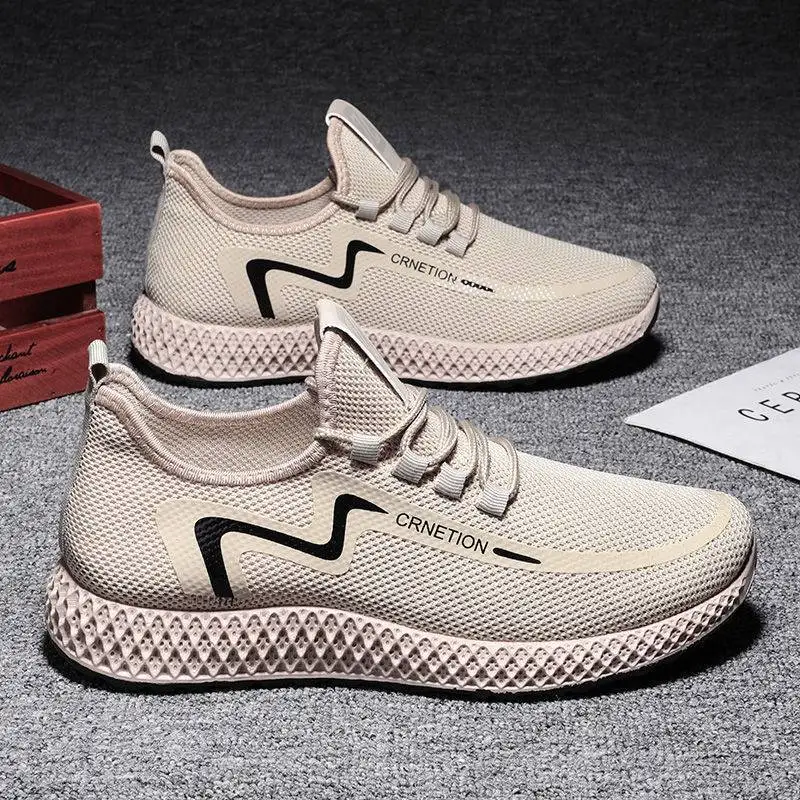 Кроссовки мужские дышащие сетчатые, модная повседневная обувь для бега, уличные теннисные туфли, белые, лето