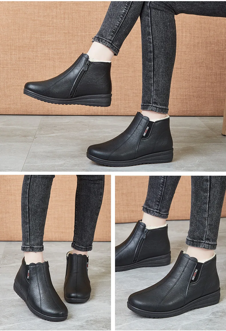 Туфли N32 для матери, обувь с мягкой подошвой для пожилых людей, короткие женские флисовые теплые ботинки на плоской подошве, обувь с подкладкой для бабушки