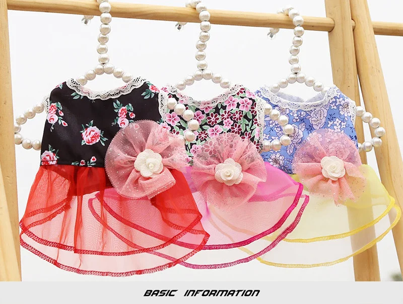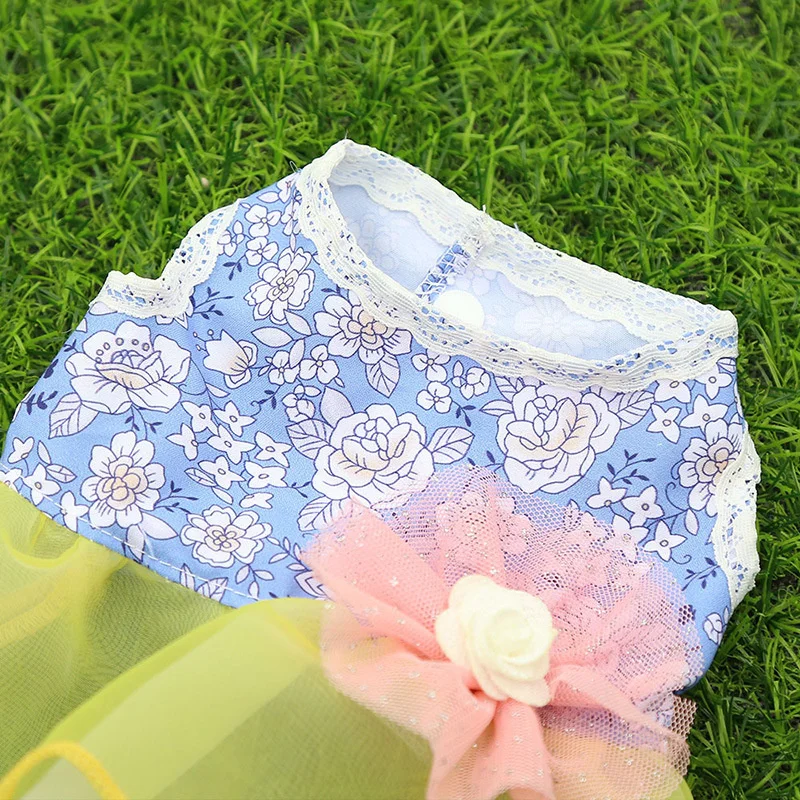 Симпатичные корейские платья для собак, летняя одежда для маленьких собак, одежда для собак, чихуахуа, Тюлевая юбка с цветочным рисунком, платье для щенка, женская одежда