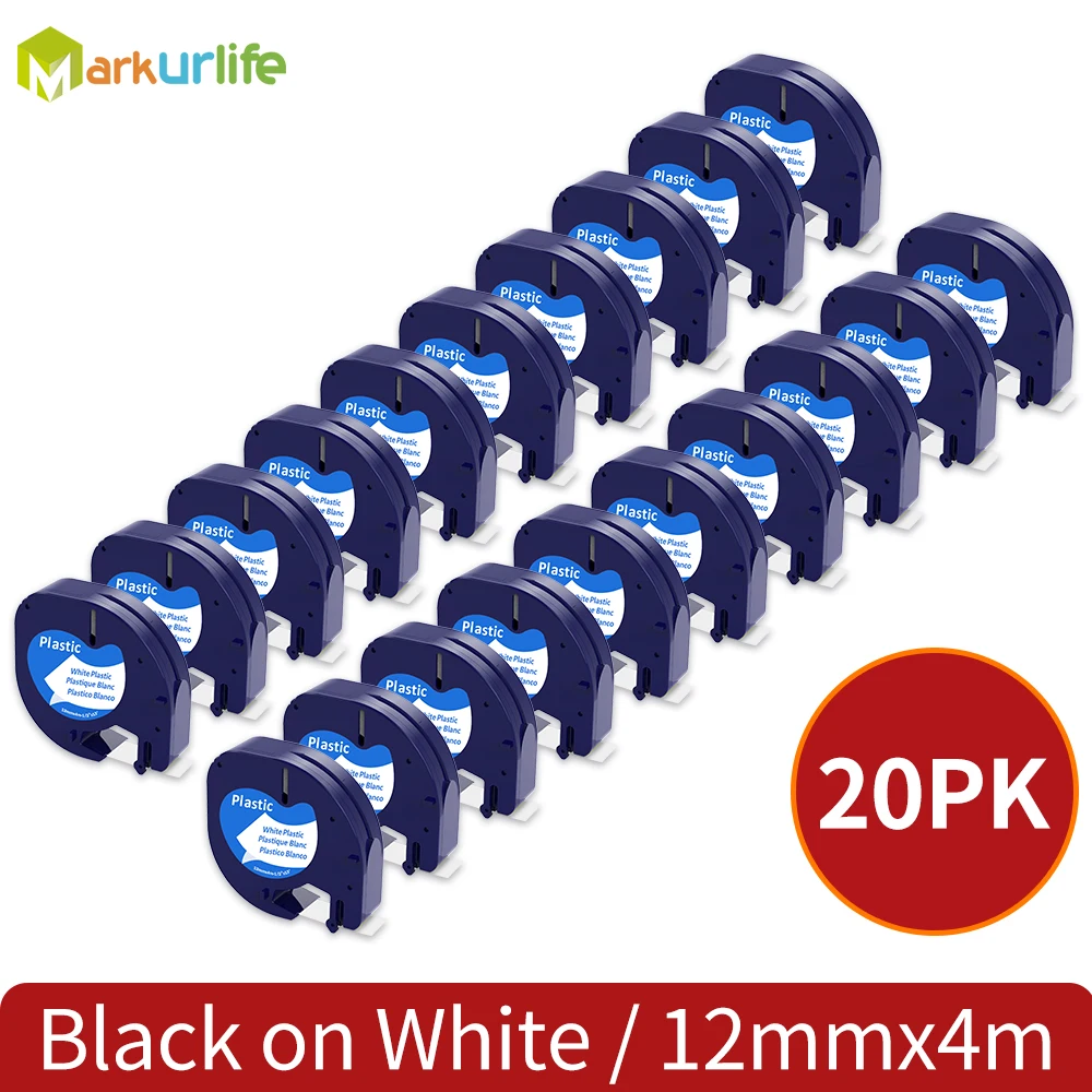 20 шт., лента для этикеток 91330 ЛТ, 12 мм * 4 м, совместимая с Dymo Letratag Plastic 91200 91331 91201 12267 18769 18771, для фотоэлементов