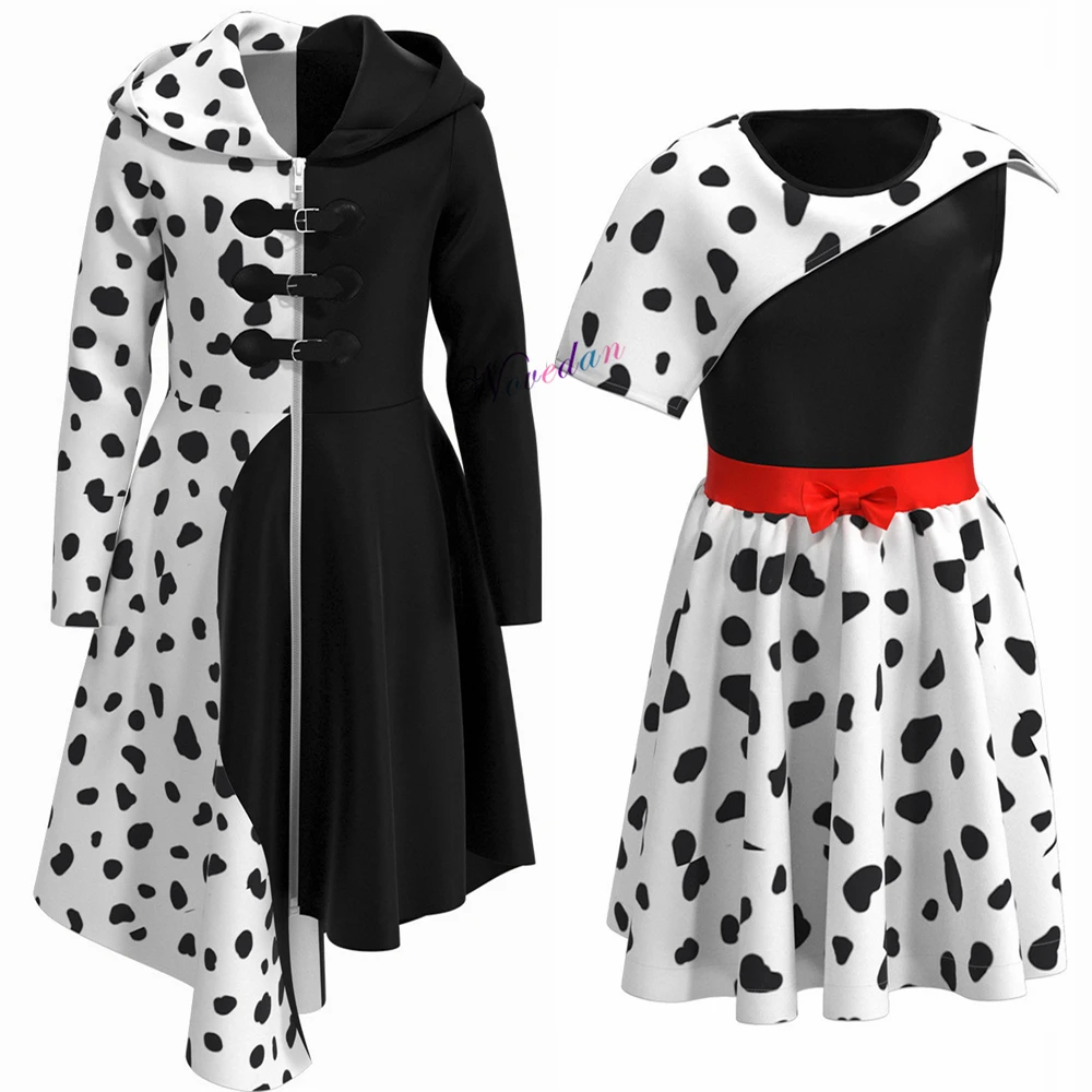Детский карнавальный костюм Cruella De Vil, платье Deville, наряд для девочек, Детский карнавальный вечерние на Хэллоуин, день рождения
