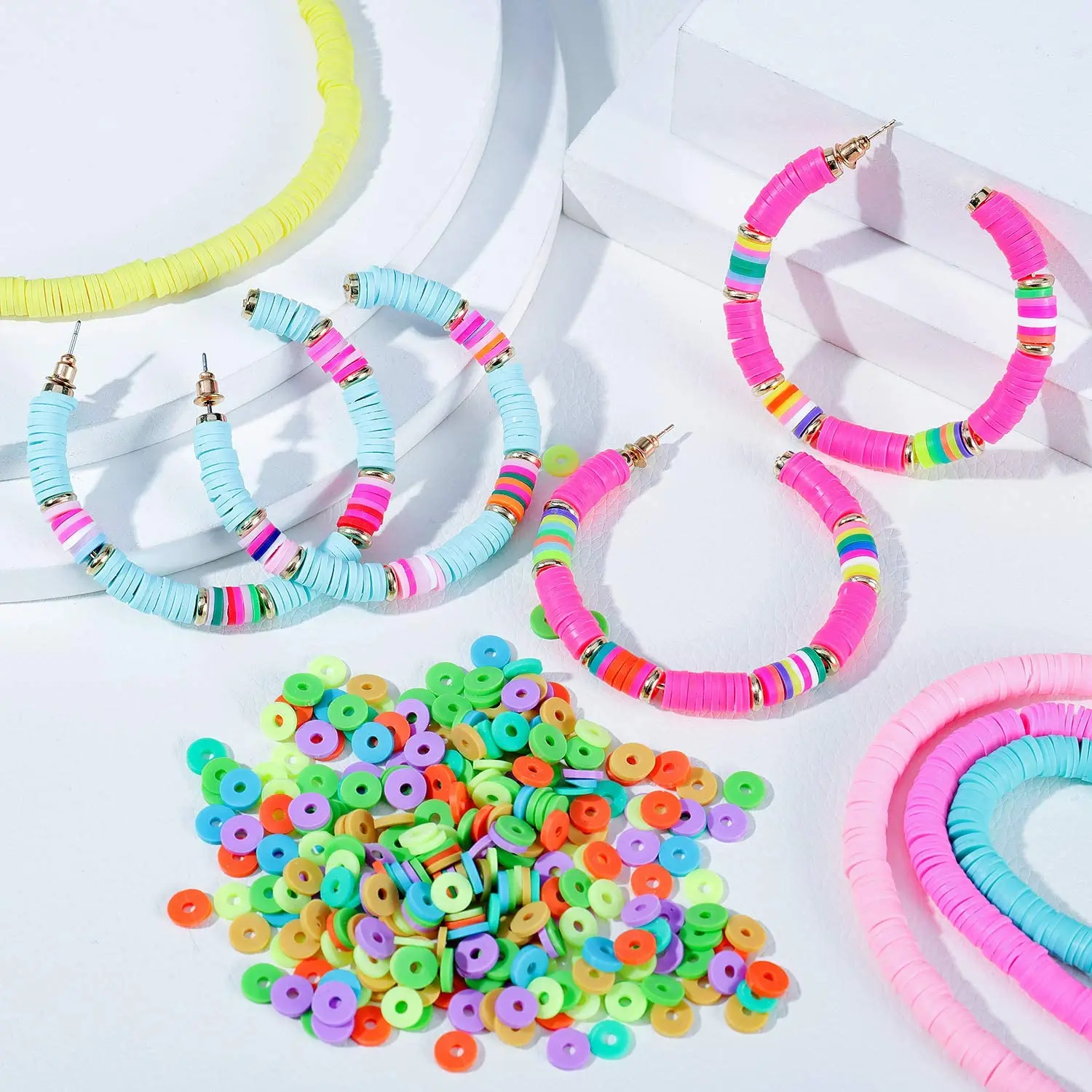 Плоские круглые бусины из полимерной глины, 16 дюймов, 6 мм, свободные бусины Heishi Disk ручной работы, аксессуары для браслетов, 350 шт.