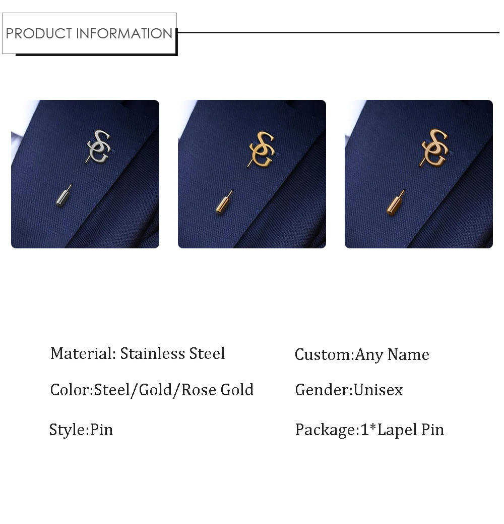 Sherman Custom 2 буквы очарование начальный кулон воротник булавка персонализированные имя брошь мужской отворот значок подарок ювелирные изделия из нержавеющей стали