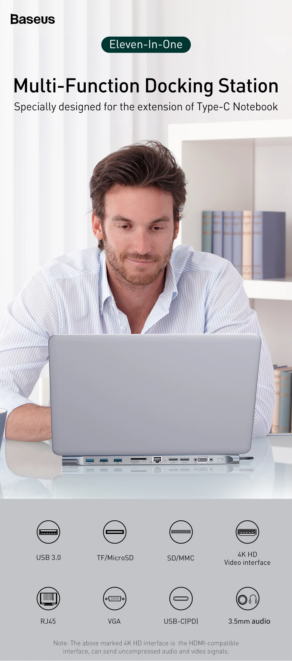 НаименованиеBaseus 11 портов USB 3,0 HDMI RJ45 USB C HUB