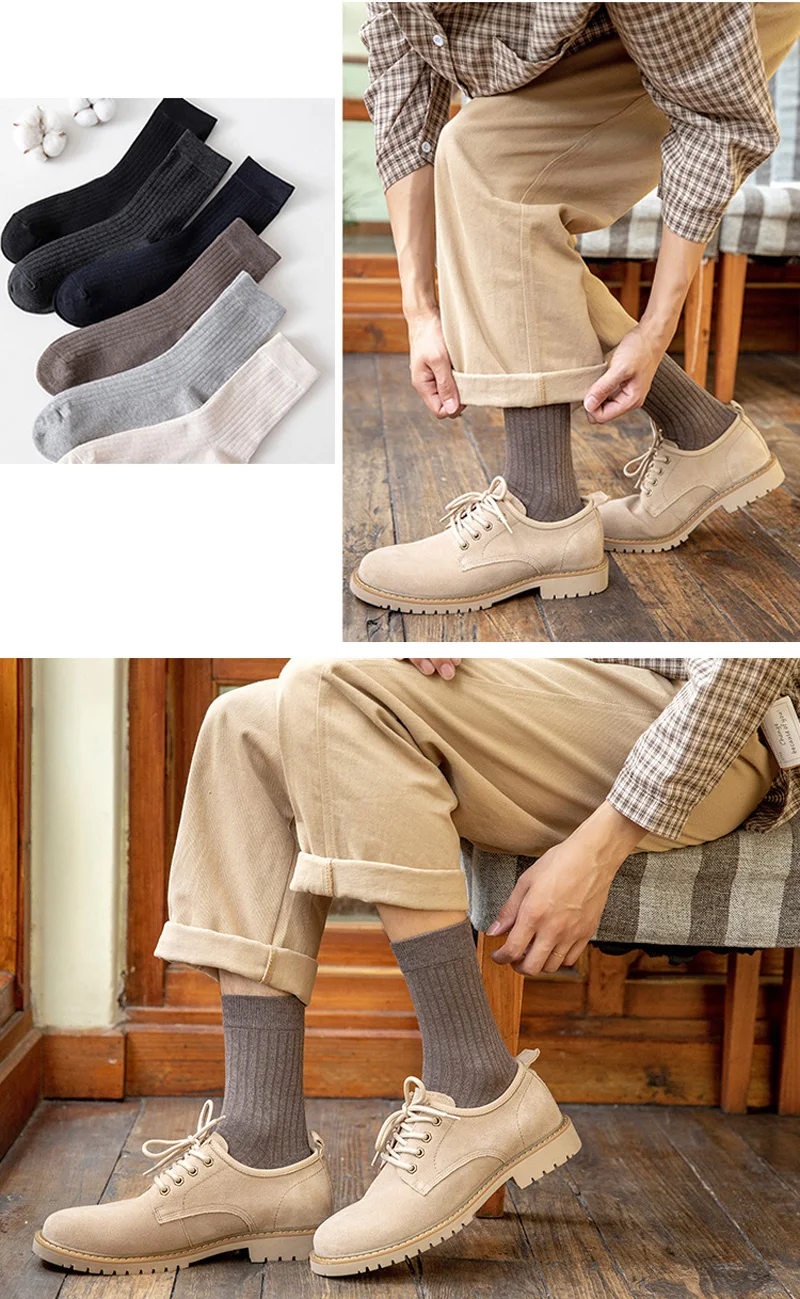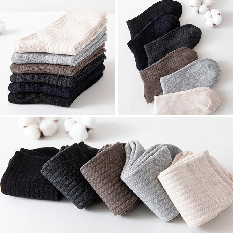 Носки мужские длинные хлопковые в полоску, теплые деловые, однотонные, мягкие дышащие, для зимы, 5 пар