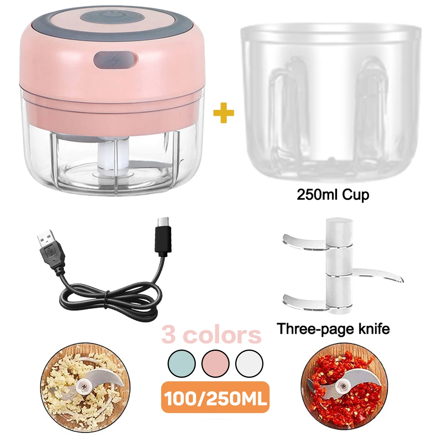 # Параметр★Основной продукт: мини Электрический измельчитель чеснока★Материал: лезвие из нержавеющей стали/пластиковый корпус★Емкость: 100/250 мл★СпециальныйⅠ. Экономьте время и энергиюⅡ. Прочный, прочный и простой в чисткеⅢ. С острым лезвием# Посылка в комплектеВариант:1 шт. (100 или 250 мл) Электрический измельчитель чеснока1 шт. USB кабельКомплект:1 шт. 100 мл Электрический измельчитель чеснока1 шт. USB кабель1 шт 250 мл чаша1 шт. три страницы лезвия
