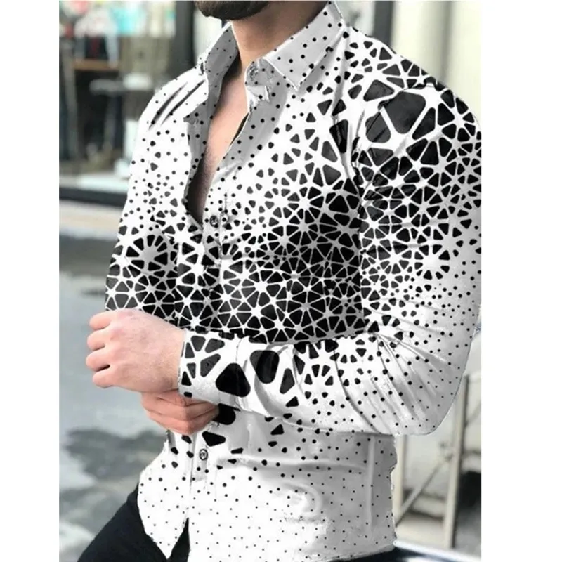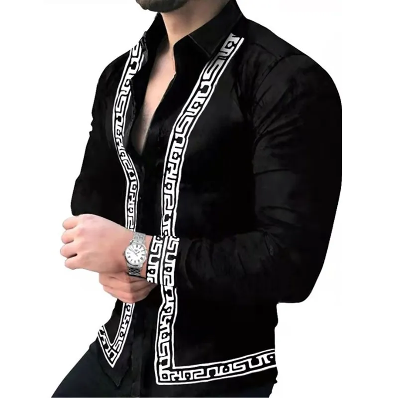 Рубашка мужская повседневная с отложным воротником и принтом, осень 201