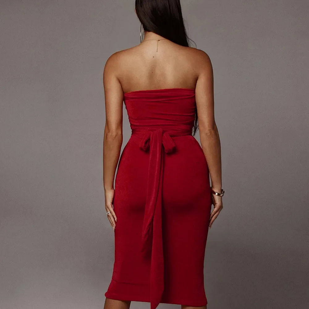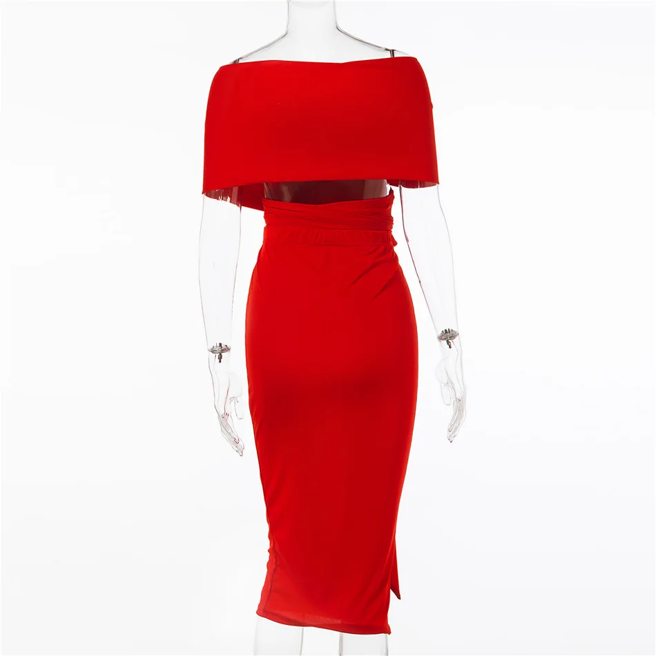 Элегантный комплект из двух предметов с бандажным платьем, женский топ с открытыми плечами и облегающее платье миди, костюмы, вечерние наряды, праздничная одежда