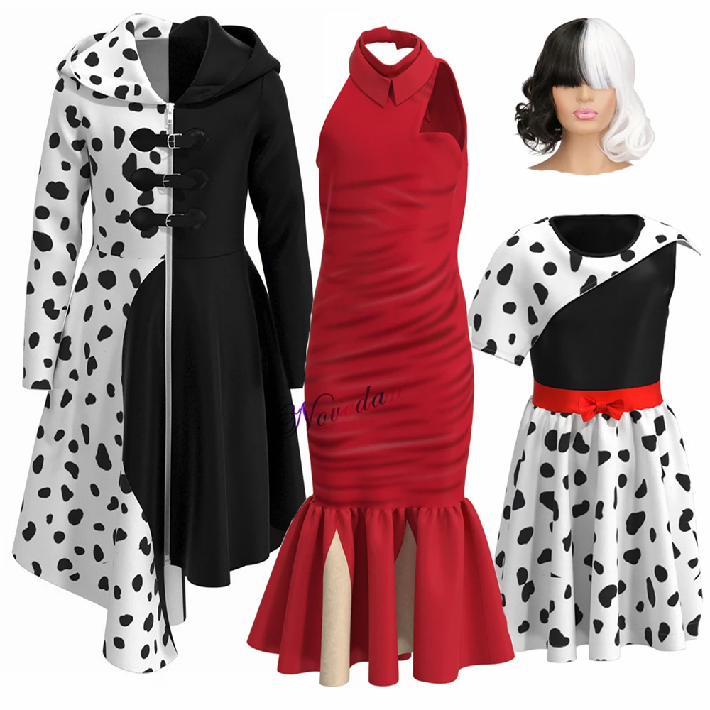 Новинка 2021, косплей-костюм Cruella De Vil, парик из фильма Супер Злодей, фотоплатье для детей, девочек