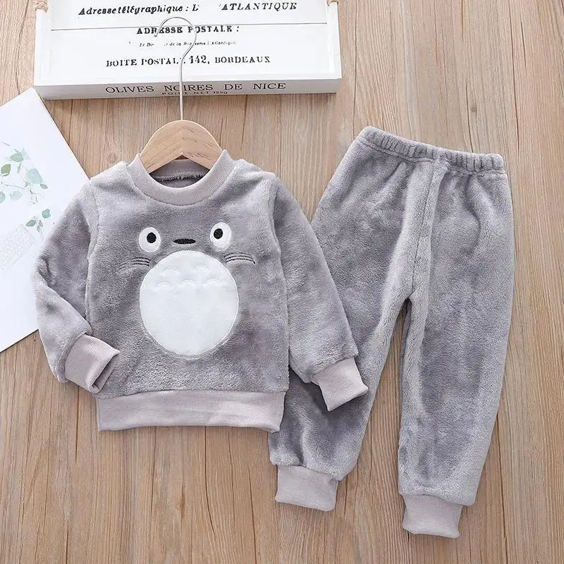 Зимние осенние теплые детские пижамные комплекты От 1 до 5 лет с мультяшным медведем с длинным рукавом для маленьких мальчиков и девочек 2 шт. наряды фланелевые детские пижамы костюм