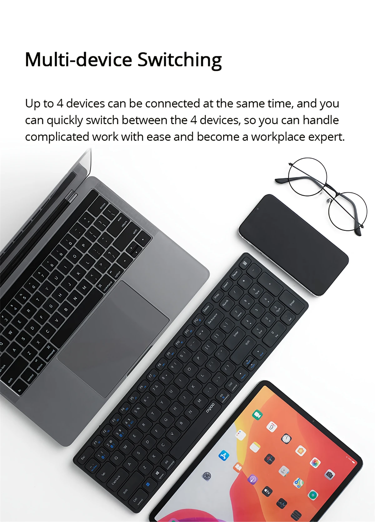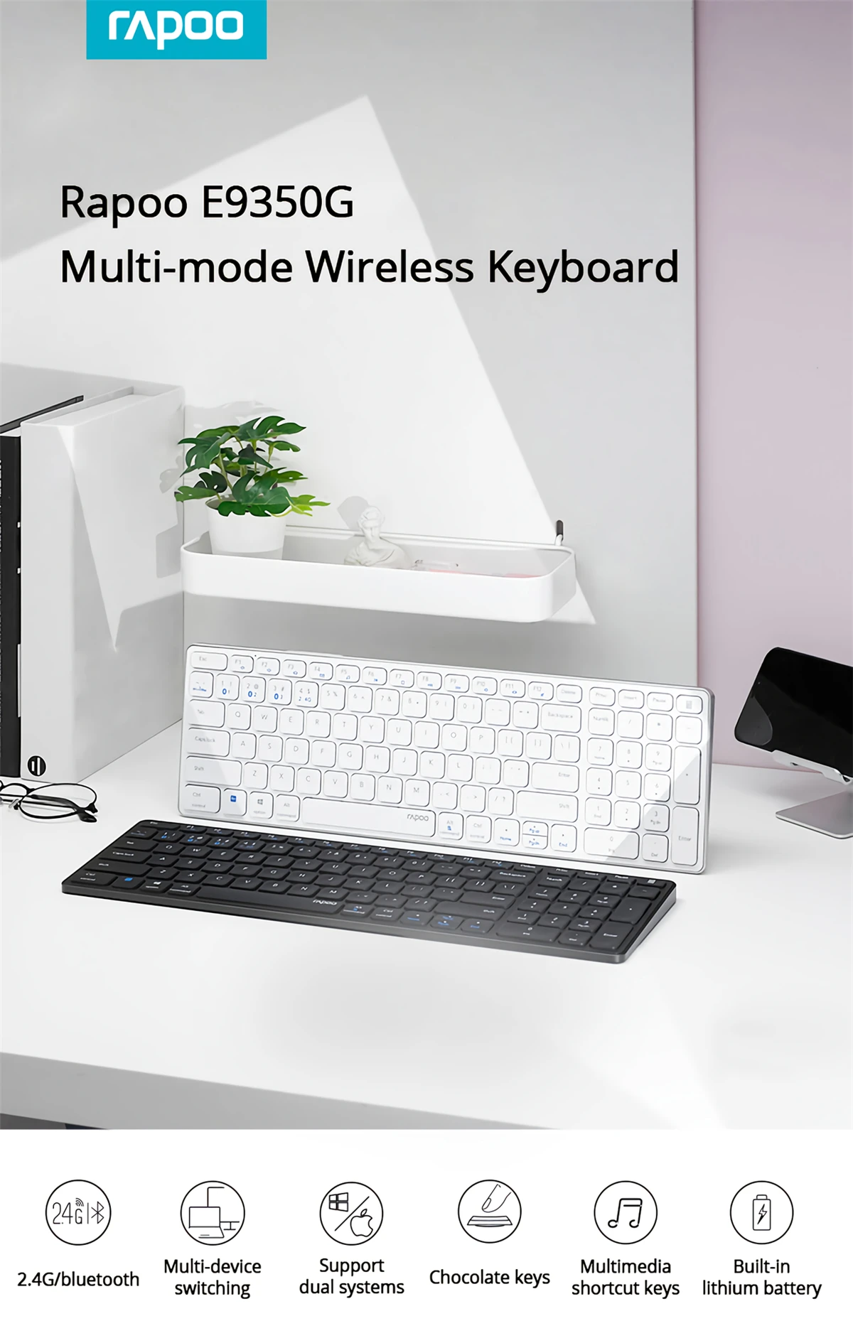 Бренд: RapooМодель: E9350GТип продукта: ультратонкая клавиатураРежим передачи: беспроводной bluetooth 5,0/bluetooth 3,0/2,4GИнтерфейс клавиатуры: Type-CПриемник: нано-приемникДиапазон приема: 10 мКоличество ключей: 99 ключейХод ключа: 1,5 ммСрок службы кнопки: 5 миллионов разРабочее напряжение: 3,7 вМультимедийные сочетания клавиш: ПоддержкаЭргономика: ПоддержкаМатериал колпачка: колпачки из АБС-пластикаЦвет клавиатуры: черный, белыйРазмер клавиатуры: 362,3 × 114,7 × 12,9 ммВес клавиатуры: 394 гРежим питания: источник питания на литиевом аккумулятореЕмкость аккумулятора: 300 мАчСрок службы батареи: около 60-96 часовПоддержка системы: Windows 10, Windows 8, Windows 7, Windows XPТип ключа: мембранаСрок службы: около 60-96 часов