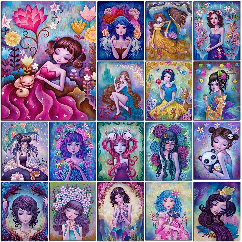 5D алмазная вышивка, девушка искусство, алмазная живопись, животные...
