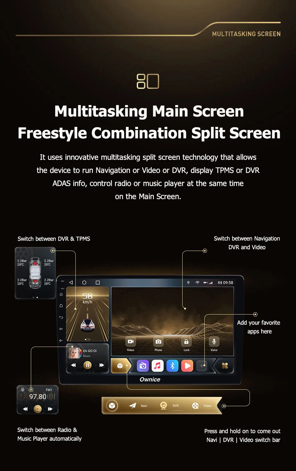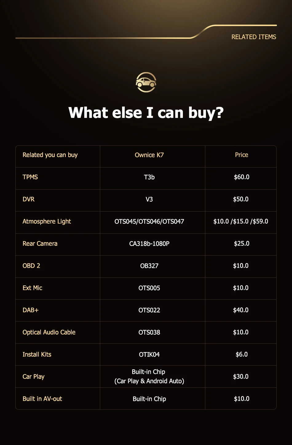 Если оригинальное автомобильное радио имеет функцию ниже, совместим ли блок Ownice Head?* Управление рулем --- да* Оригинальный радар или датчик упаковки --- да* Информация о состоянии воздуха, наружной температуре, настройке автомобиля, направляющей линии заднего хода, данных о вождении, скорости (для некоторых автомобилей) и т. д. --- да* Оригинальная AUX / USB/обратная камера --- Да, поддержкаВнимание:Приведенная выше информация только для справки, иногда она может не быть совместима с некоторыми автомобилями, потому что автомобили производятся в разных странах в разных летних вариантах, спасибо за понимание.