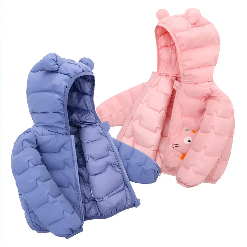 Куртка для девочек, новое теплое пуховое пальто с капюшоном и милыми заячьими ушками модная детская одежда высокого качества для мальчиков 1-5 лет