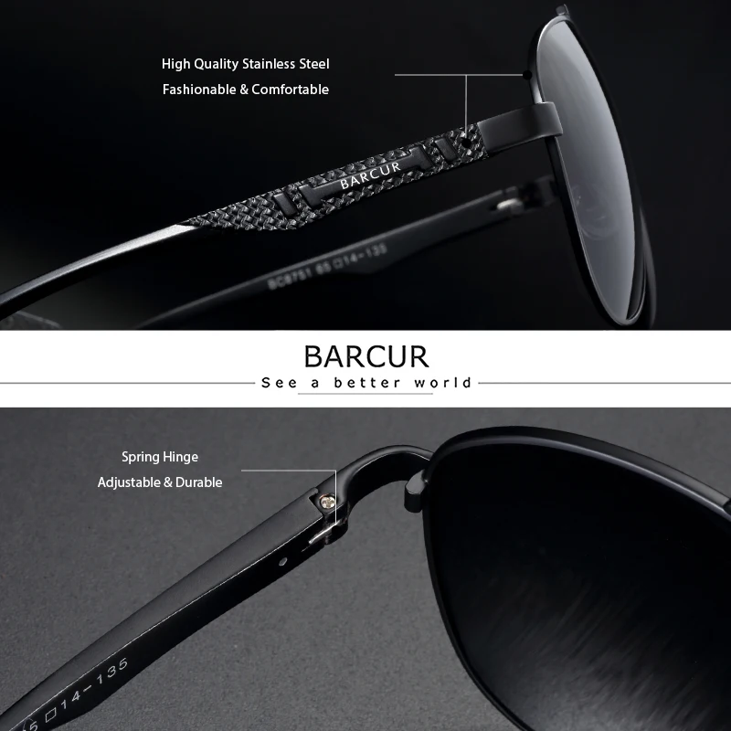 Хорошие очки, соответствуют описанию. Подойдут для мужчин. Для женщин крупноваты по размеру. Дужки подстраиваются под размер головы. Есть фирменная гравировка BARCUR. Очки были хорошо упакованы. В комплекте идет жесткий чехол, салфетка, тест на поляризацию. Спасибо этому магазину!