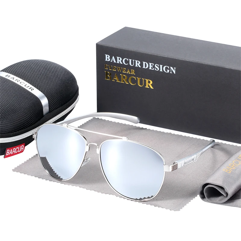 Солнцезащитные очки-авиаторы мужские и женские BARCUR, поляризационные зеркальные очки в оправе из нержавеющей стали, с защитой UV400