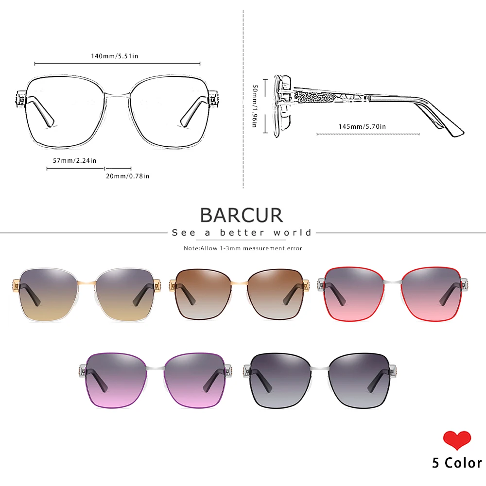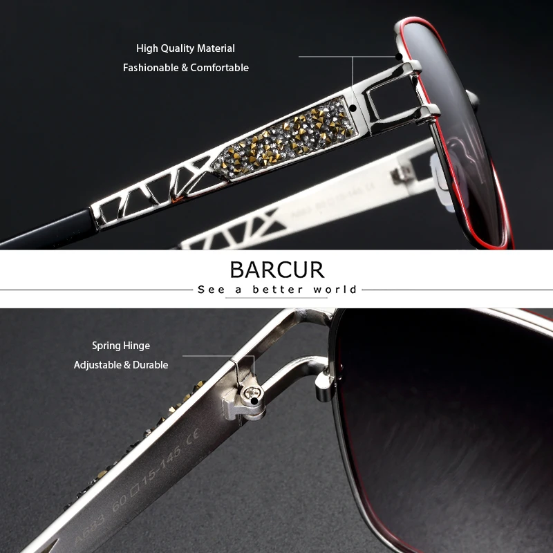 BARCUR Роскошные брендовые поляризованные женские очки от солнца со...