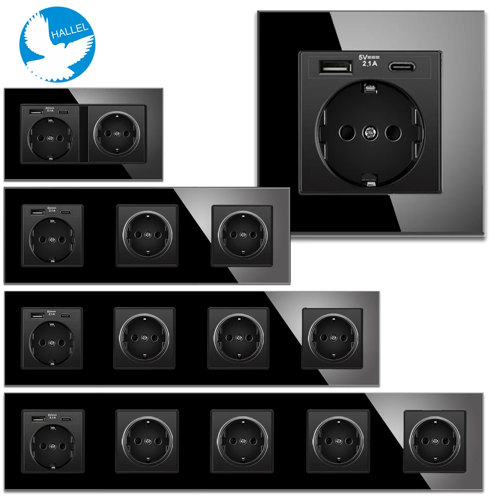 Немецкий тип C USB розетка Хрустальная стеклянная панель, русский USB C настенный выключатель питания розетка Испания быстрое зарядное устройство 5V 2.1A адаптер Польша