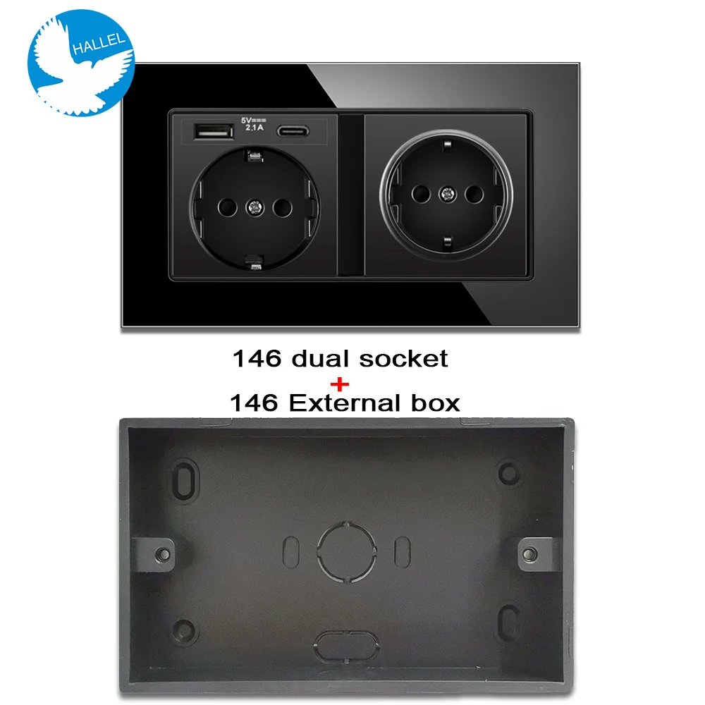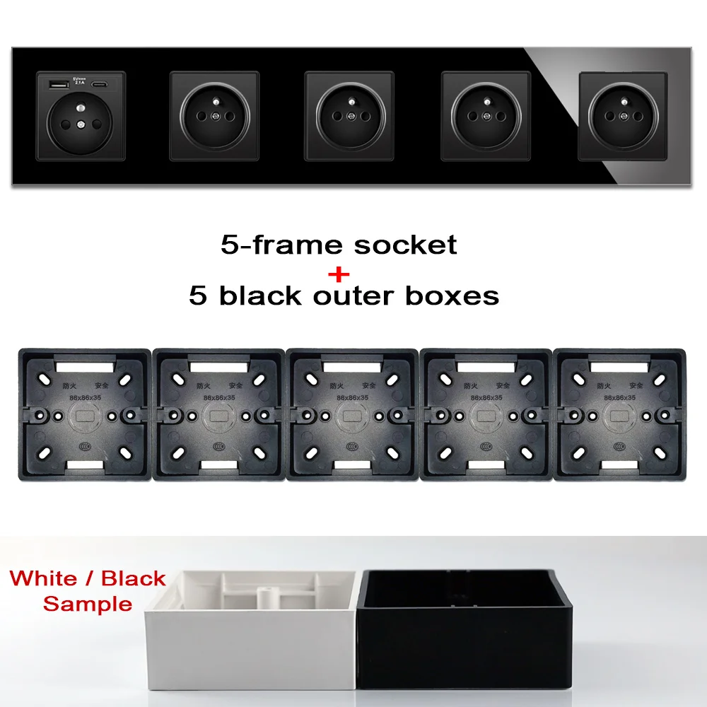 Многорамный ЕС французский USB разъем питания типа C 2A быстрое зарядное устройство черная панель Монтажная коробка, Français розетка Польша 110-250 В 16A розетка