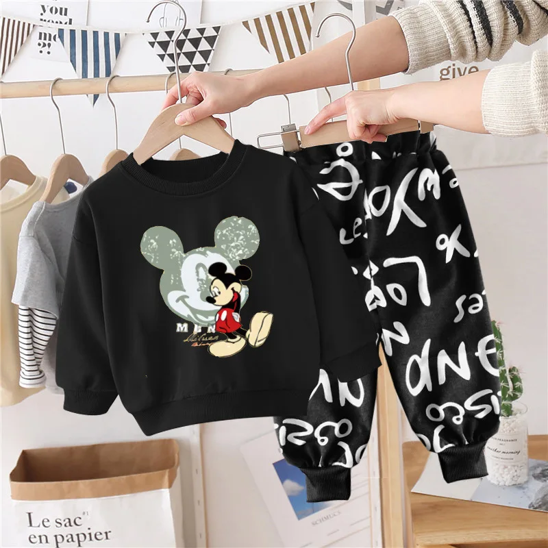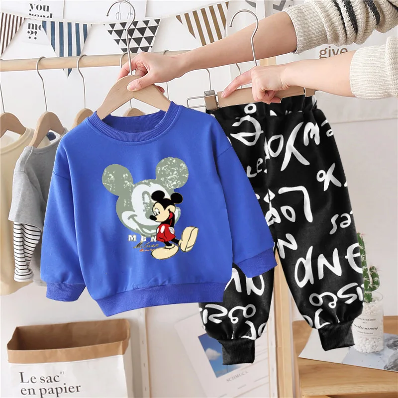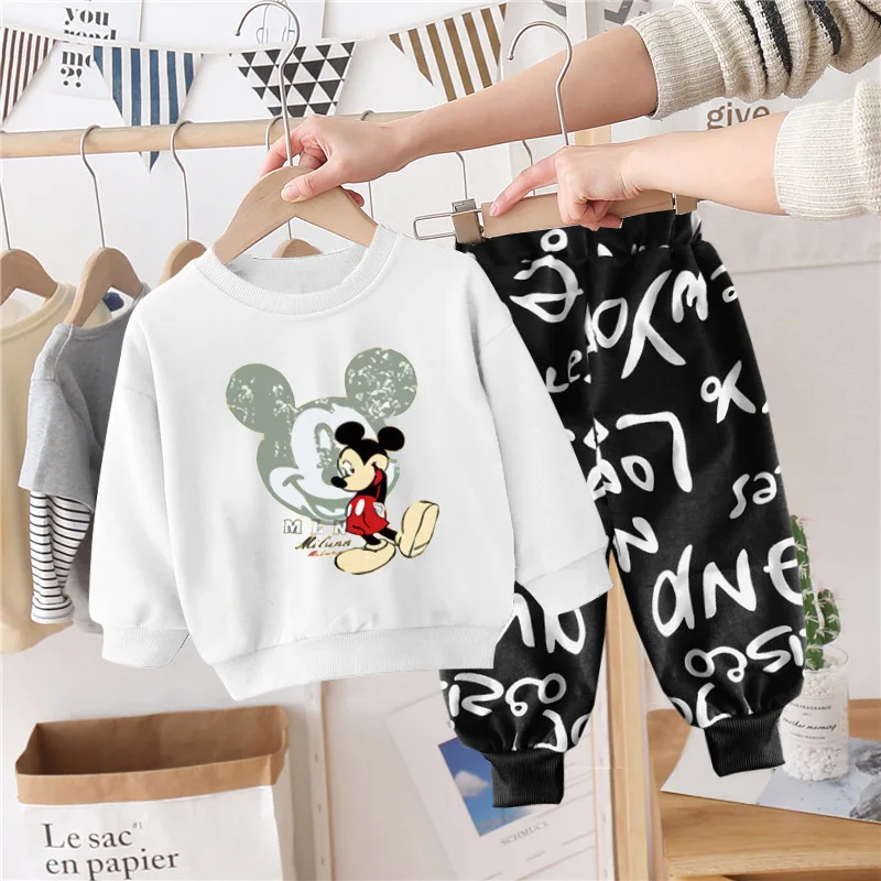 Комплекты одежды для мальчиков и девочек, хлопковая футболка с длинным рукавом и штаны с изображением Микки Мауса, на возраст 2-7 лет, весна-осень