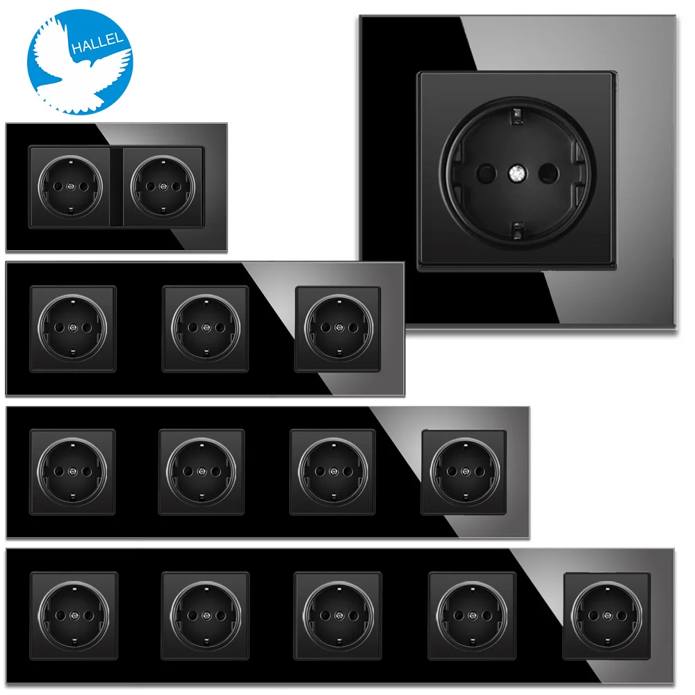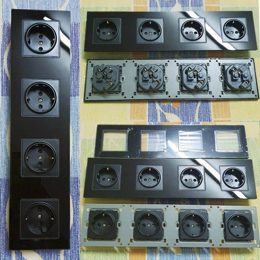 Немецкая электрическая розетка 2, 3, 4 n 5 с черной стеклянной панелью, комбинированная Европейская и испанская вилка, розетка Schuko Россия 220 В 16 А