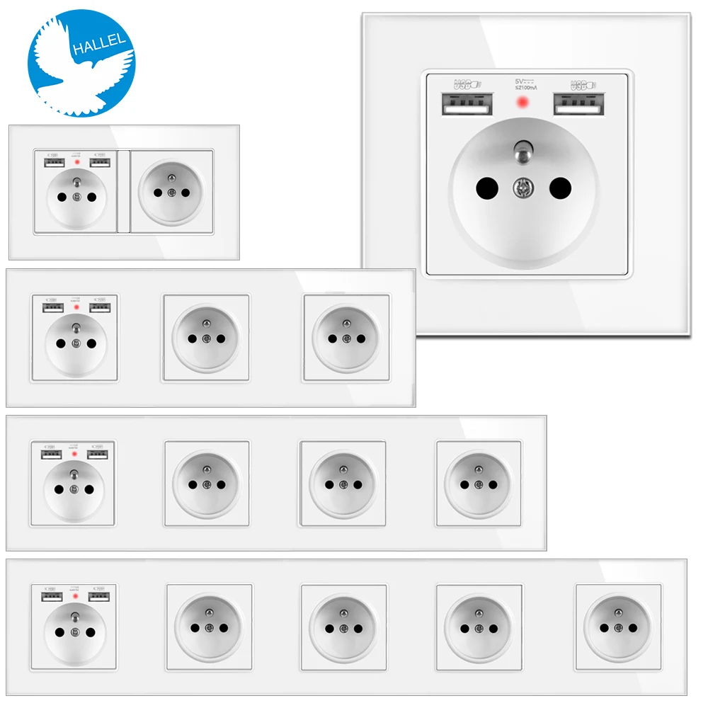 USB Type C 2.1A Быстрая зарядка французская розетка с кристаллическим стеклом белого цвета 2-5 многорамочная комбинация, Français Pop розетка USB-C
