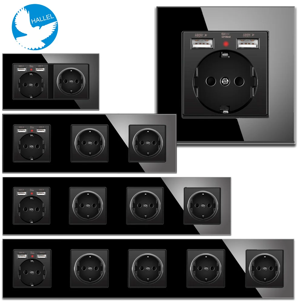 Электрическая розетка премиум-класса с европейской вилкой, немецкая рамка от 2 до 5, черная стеклянная панель, USB, быстрое зарядное устройство на базе Android, настенная розетка, Украина, розетка 220 В, 16 А