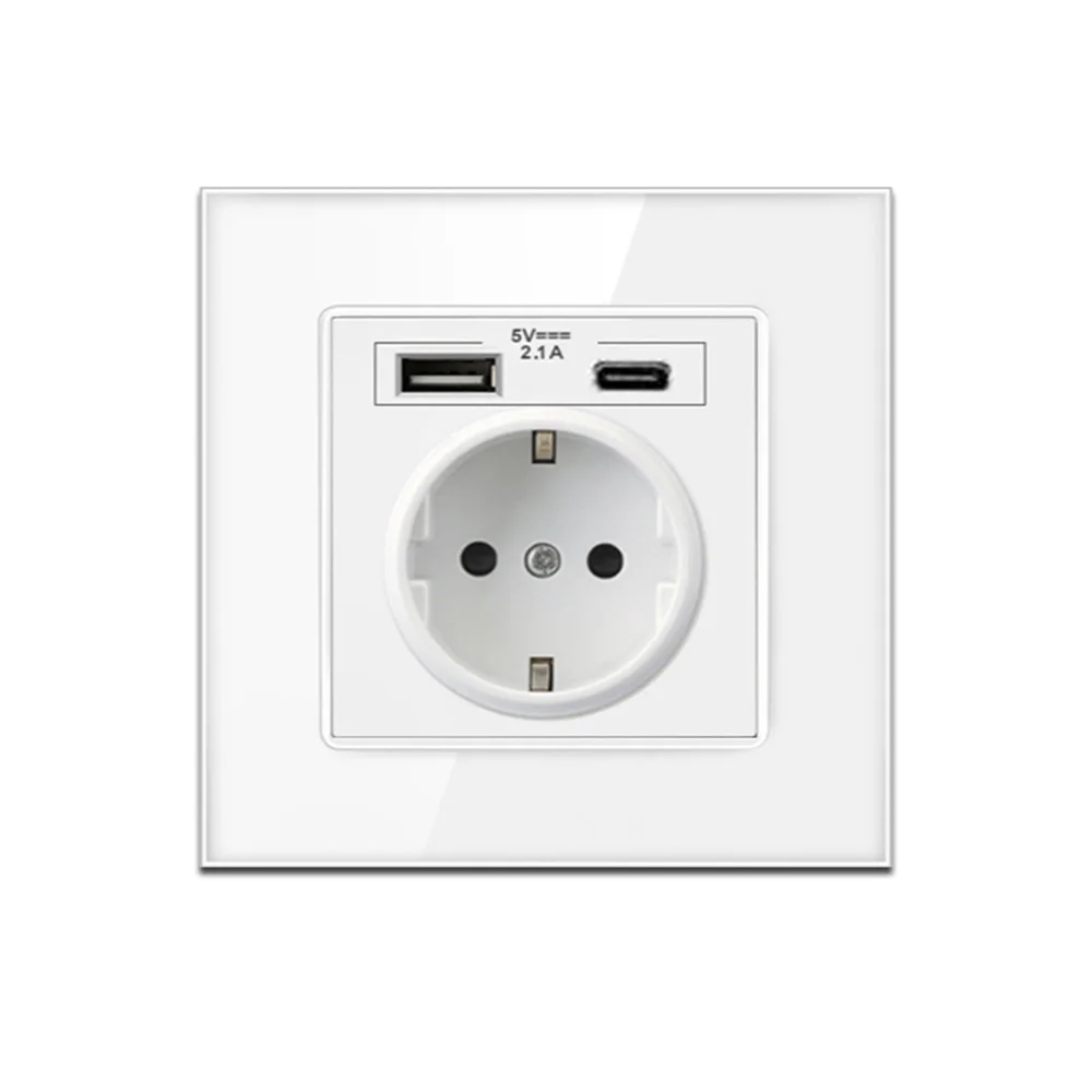 USB Type C Pop розетка французская | Немецкая электрическая вилка, белая панель настенная розетка русская, 2100ма USB-C Быстрая зарядка розетка
