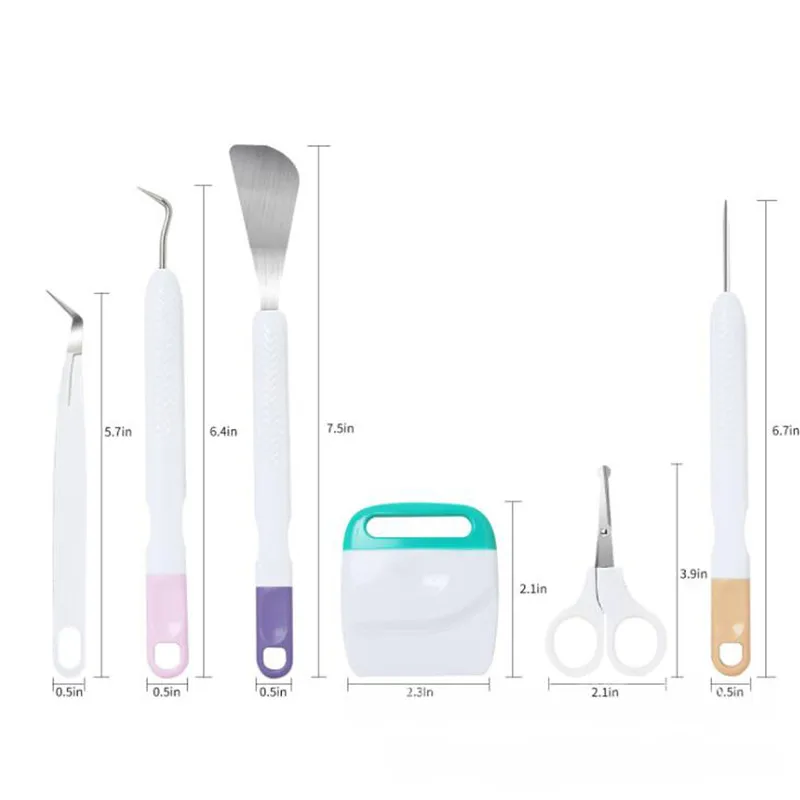 Набор инструментов с шестью инструментами. Включает в себя: ножницы, пинцет, крючок, скребок, шпатель и шпатель стилус для использования с Cricut Explore ore и машины для изготовления.