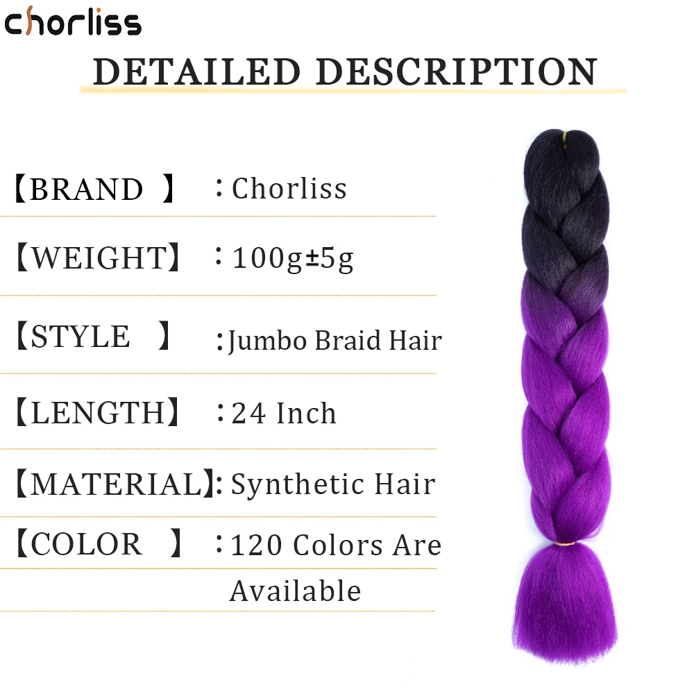 Джамбо плетеные волосы, 24 дюйма, цветные синтетические плетеные волосы для наращивания, оптовая продажа, предварительно растягивающиеся яки, Кане, Калон, Омбре, цвет ed Chorliss