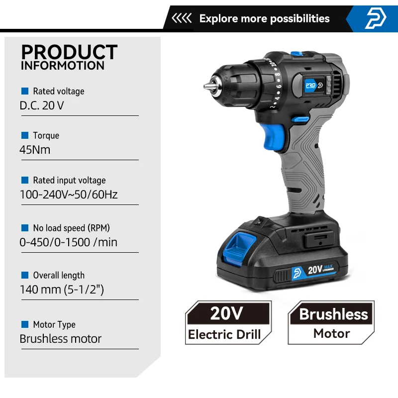 Электродрель PROSTORMER, миниатюрная беспроводная дрель без щеток, 45 нм, 20 в, электроинструменты, отвертка для ремонта, 5 бит