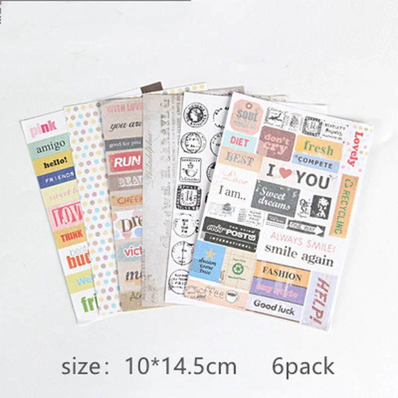 Набор стикеров для скрапбукинга, 6 листов в сумке, канцелярские при...