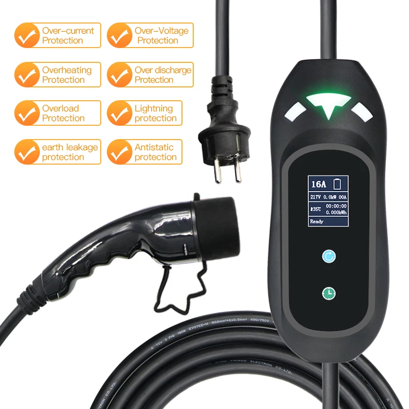 Электрический Портативный автомобильное зарядное устройство типа 2 типа 1 Используйте для зарядки электрических автомобилей 220V 16a 3.6kw 5 м кабель для программирования в вилкой