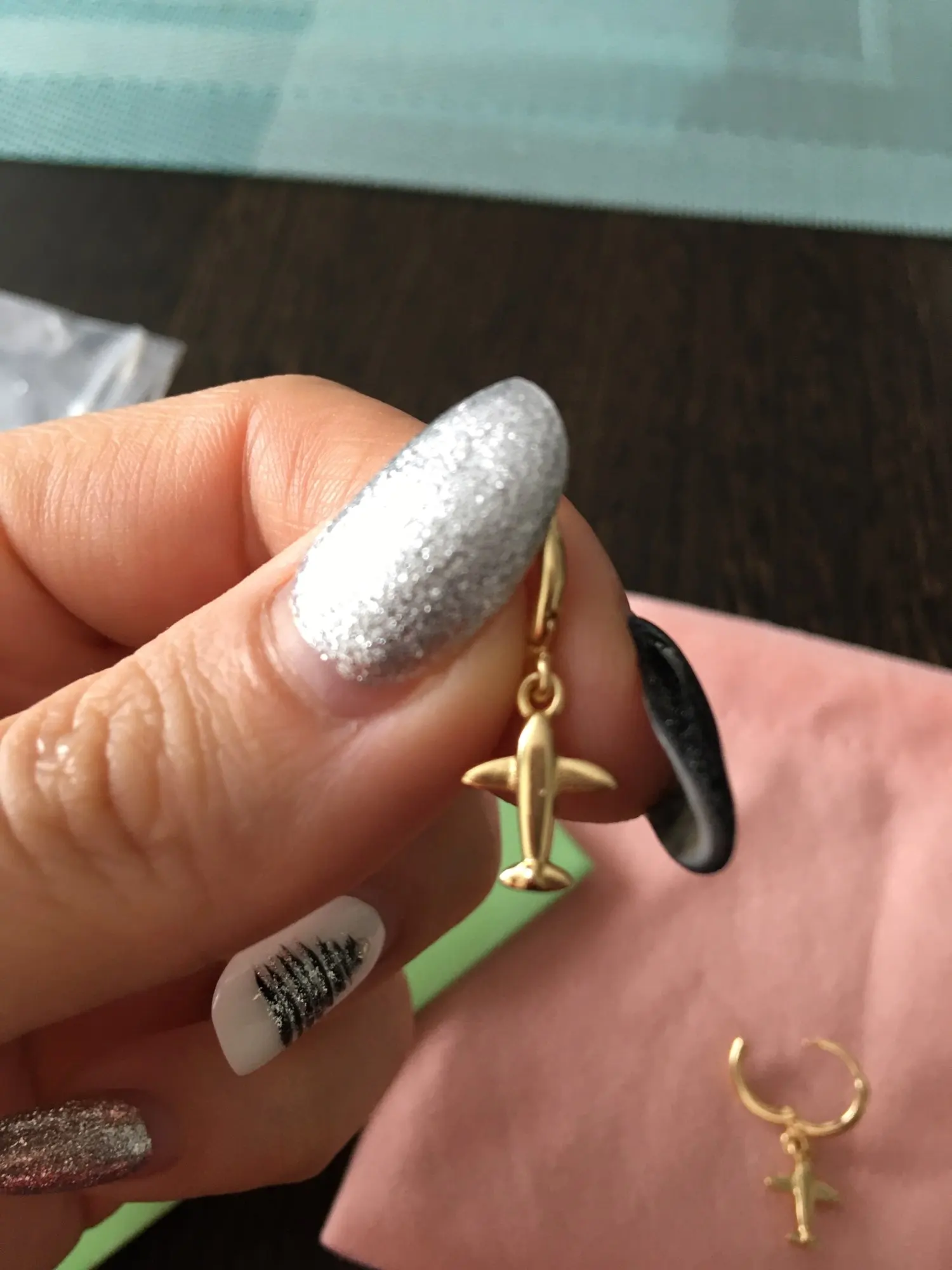 Качественная упаковка. Всё дошло в целости. Доставка быстрая-2недели до ленинградской области. Милые крошечные самолётики серёжки! Написано серебро, но пробы я не нашла. На магнит не магнитятся. Отлично подойдут для девушек подростков-подарю племяннице. Продавец прислал подарочный мешочек и салфетку для серебра. Продавцу делаю процветания и успехов!!! Спасибо!!!